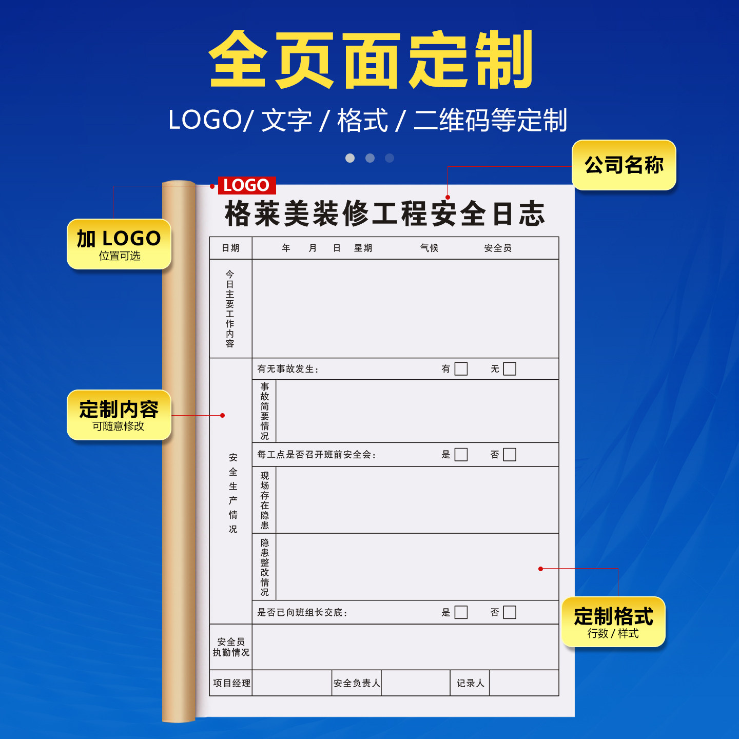 【装修安全日志】施工单位装潢质量巡查记录本工地现场监理日记本