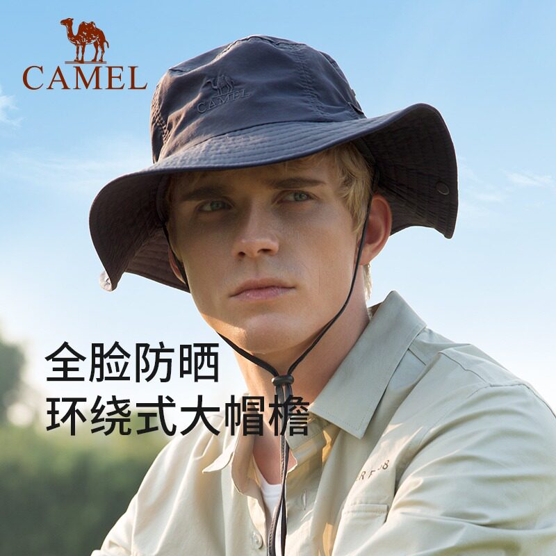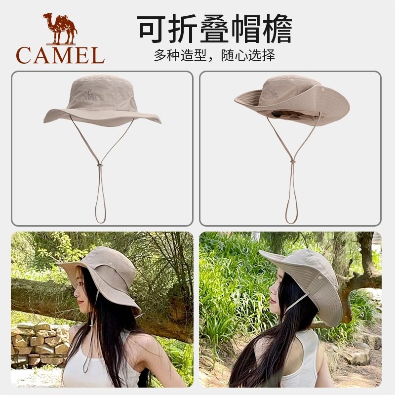 【小耶溪】骆驼防晒渔夫帽女夏季防紫外线徒步登山帽大檐遮阳帽男