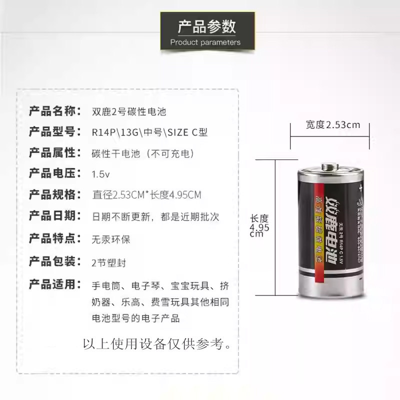 双鹿2号电池R14碳性中号C型二号1.5v干电池摇椅适用于费雪早教玩具花洒扫地机器人面包超人玩具通用LR14电池