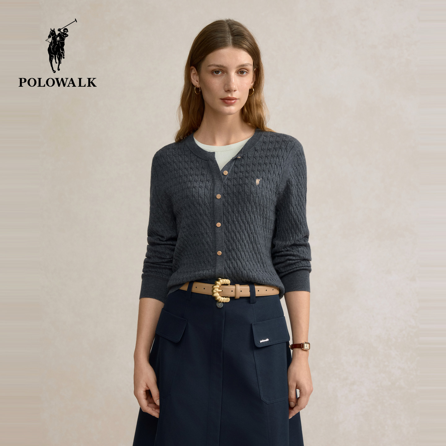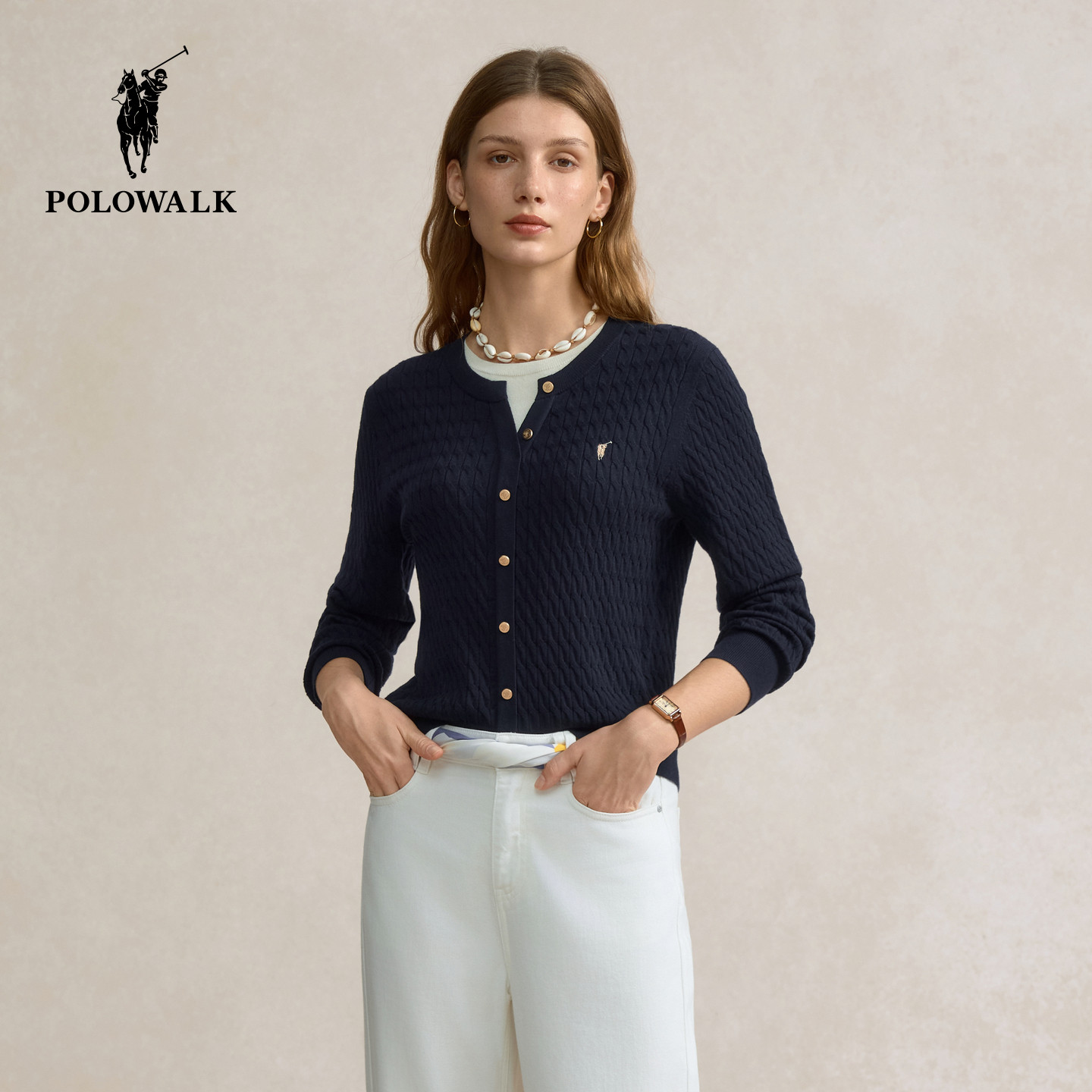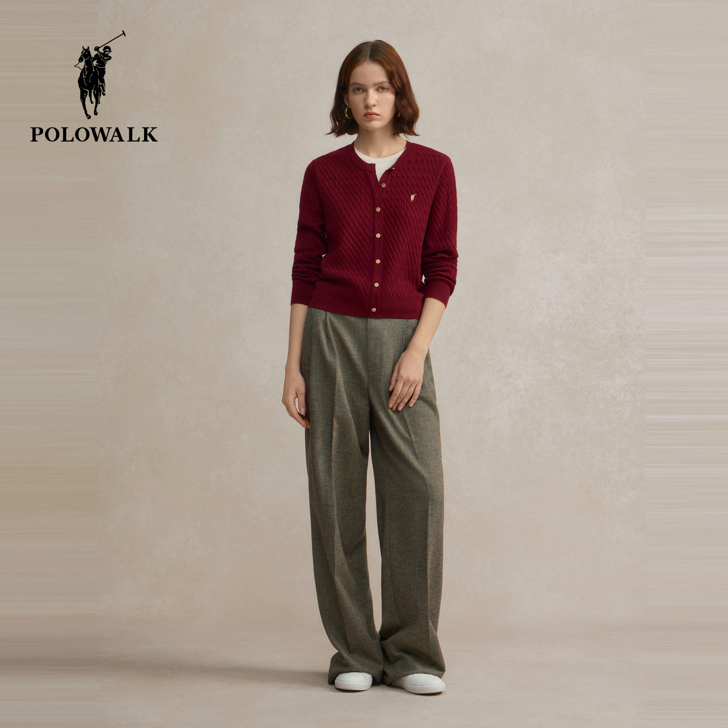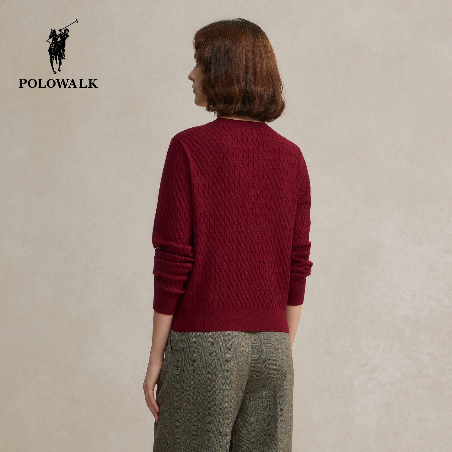 【特惠】POLOWALK女士绞花毛衣针织衫开衫薄款新年红内搭上衣