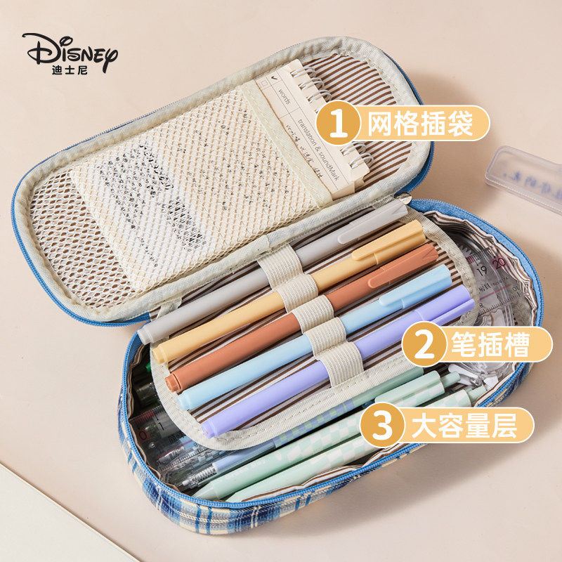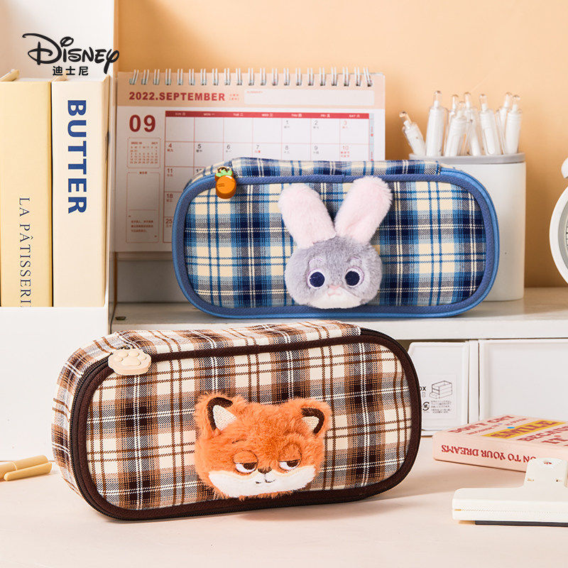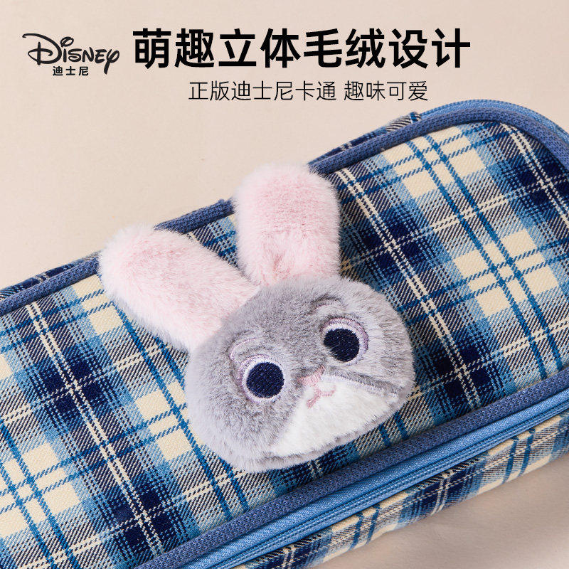 迪士尼立体毛绒笔袋卡通可爱格子女小学生文具盒萌趣公仔儿童大容量简约笔袋文具用品多层高颜值男生文具笔袋