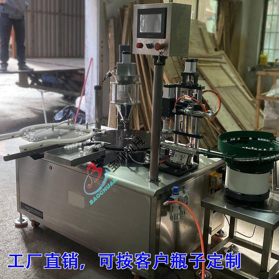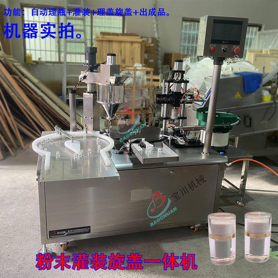粉末灌装旋盖机中药粉香精化学品粉剂填充扭盖生产线设备一体机