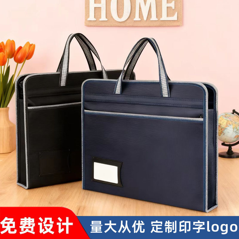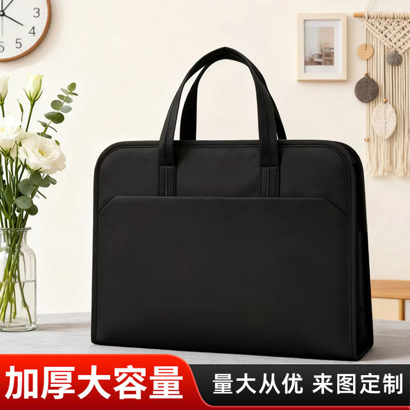 商务公文包男大容量加厚会议包男女手提文件袋带水杯位可定制logo