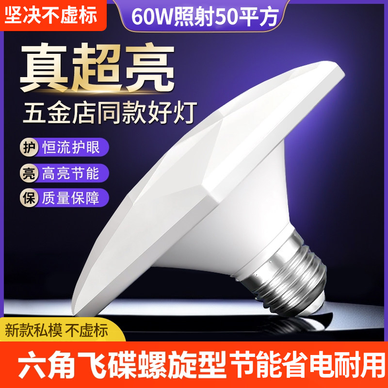 六角飞碟灯e27螺口家用客厅超亮照明台灯LED球泡护眼省电灯泡节能