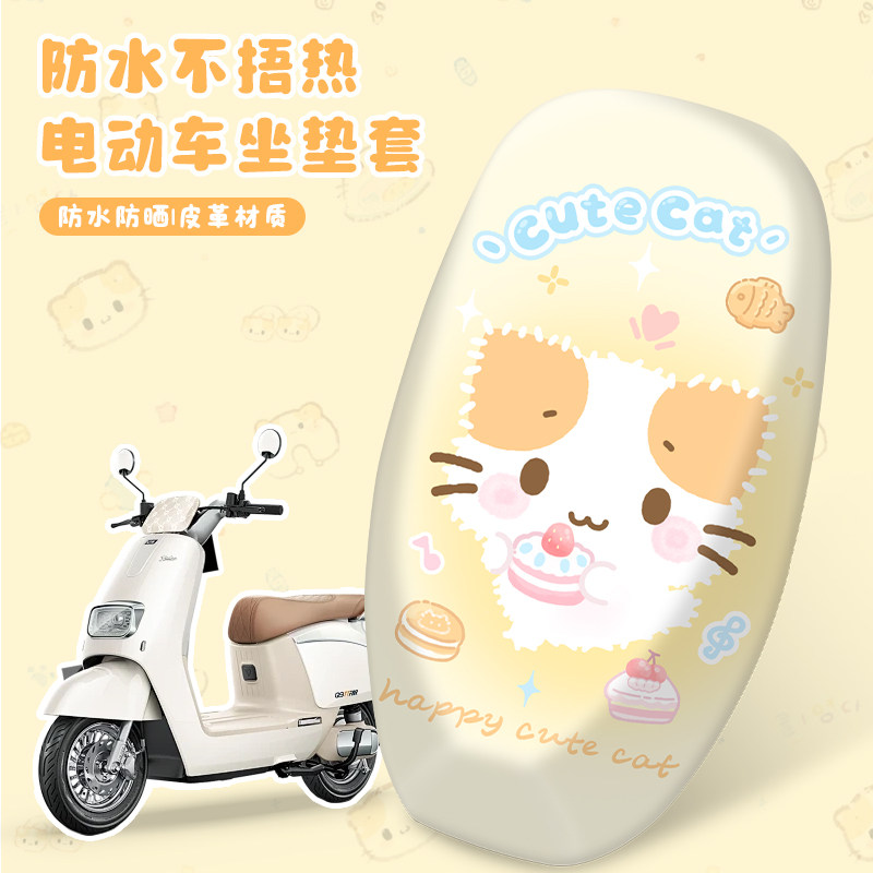 棉花糖猫电动车座套摩托电瓶车坐垫罩防水可爱适用于爱玛雅迪台铃