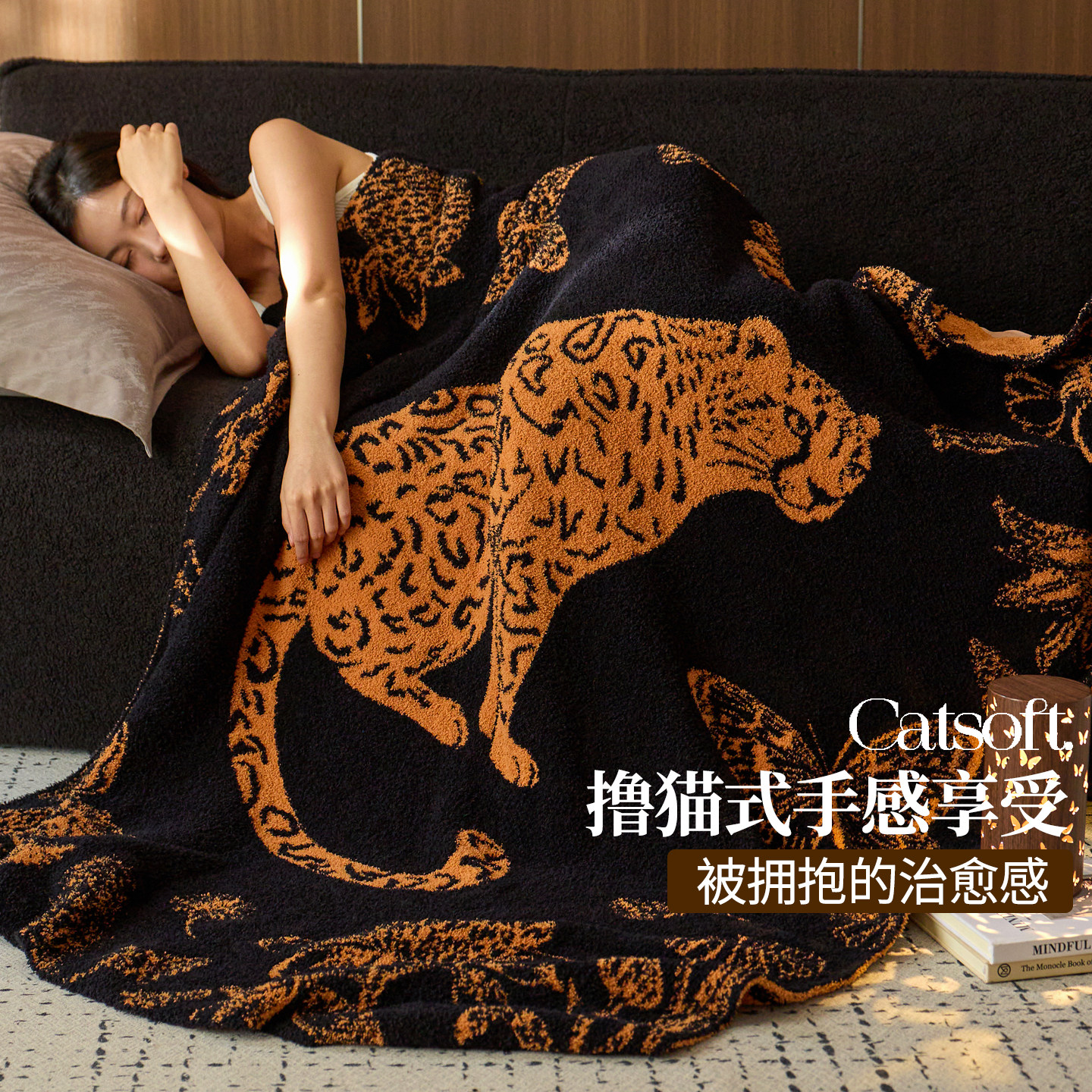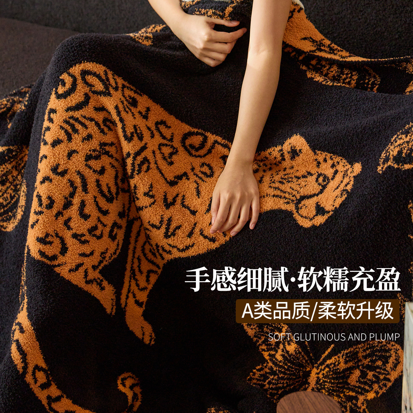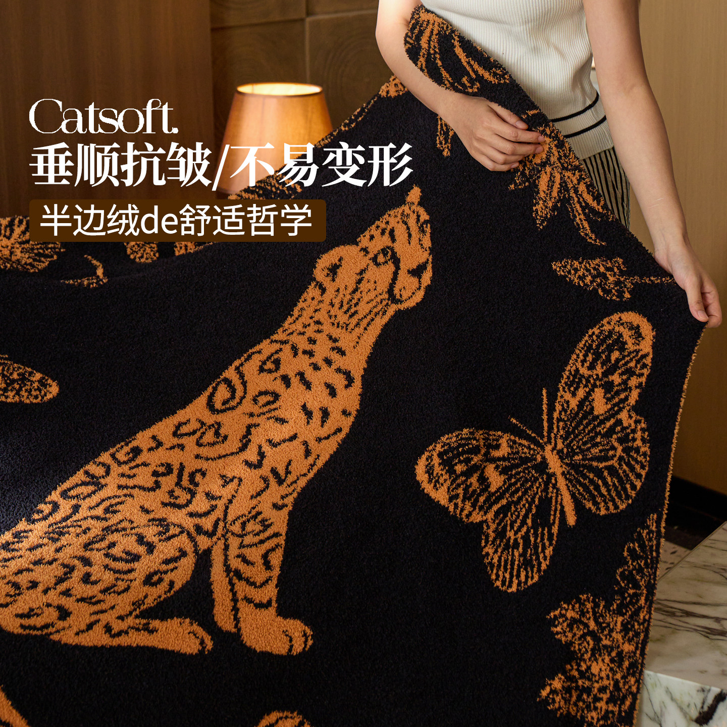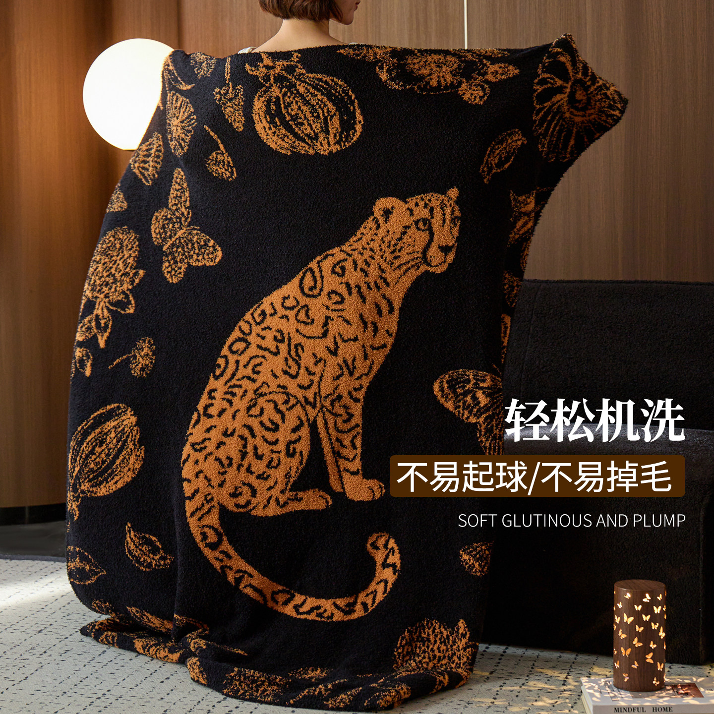 如奕A类豹富休闲盖毯艺术感半边绒毯多功能航空毯沙发午睡披肩毯