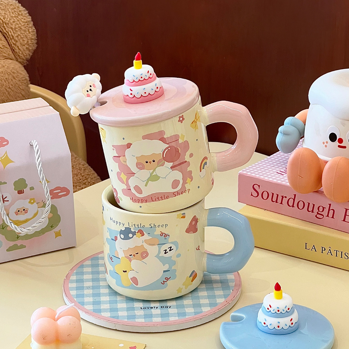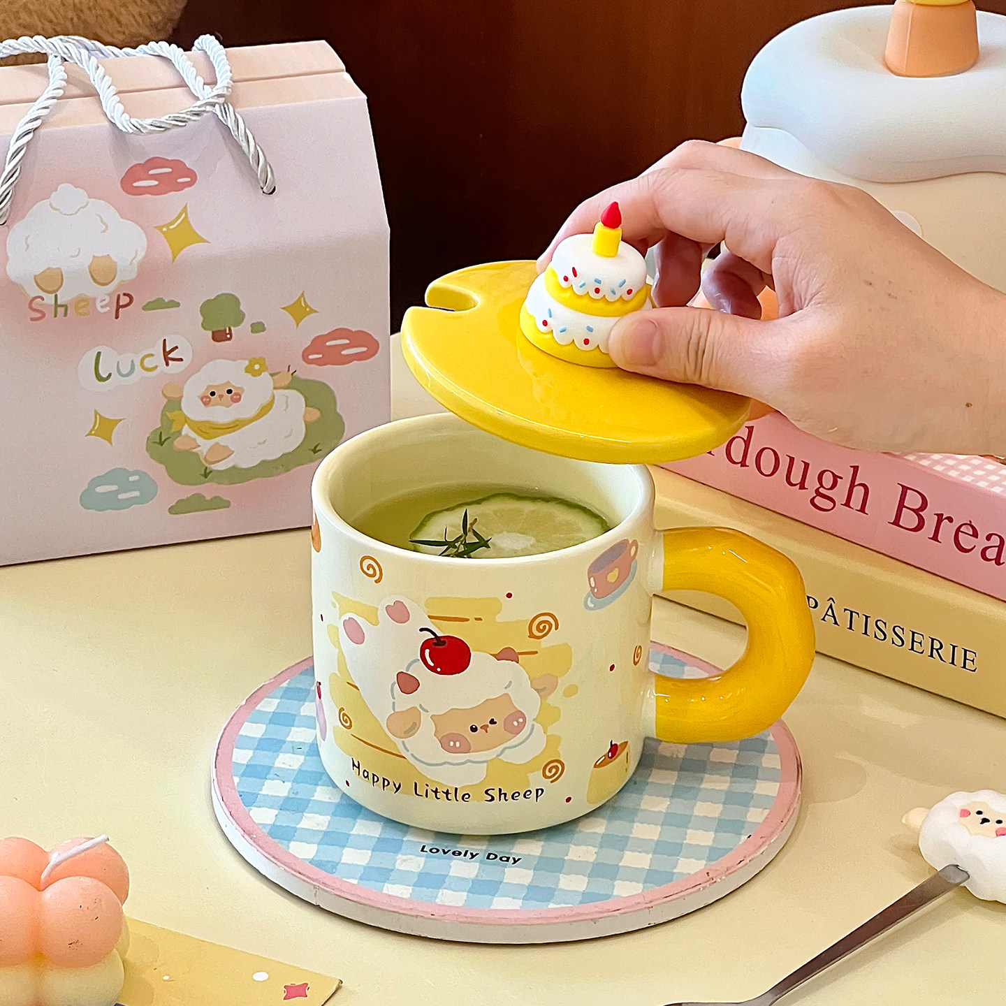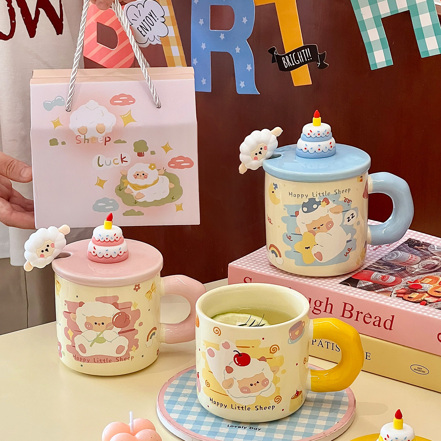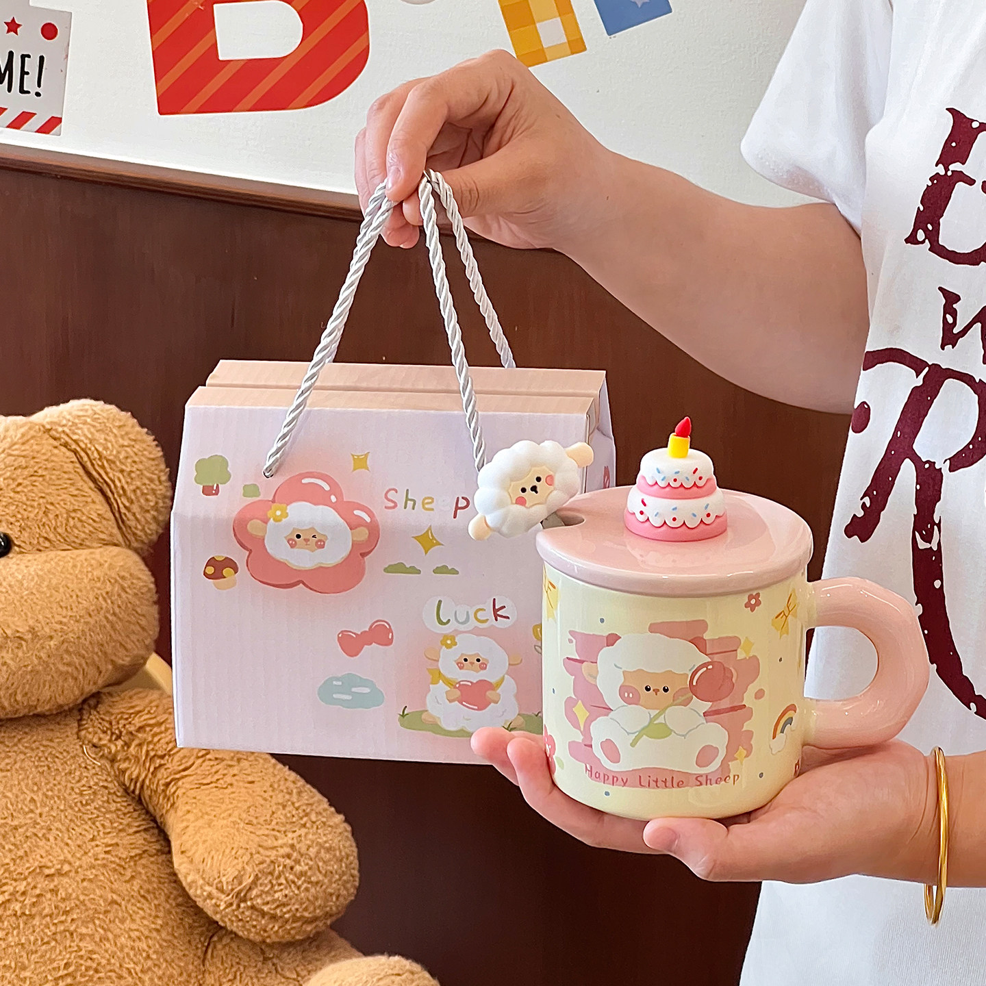 舍里可爱萌趣陶瓷马克杯高颜值带盖水杯送女生生日礼物闺蜜伴手礼