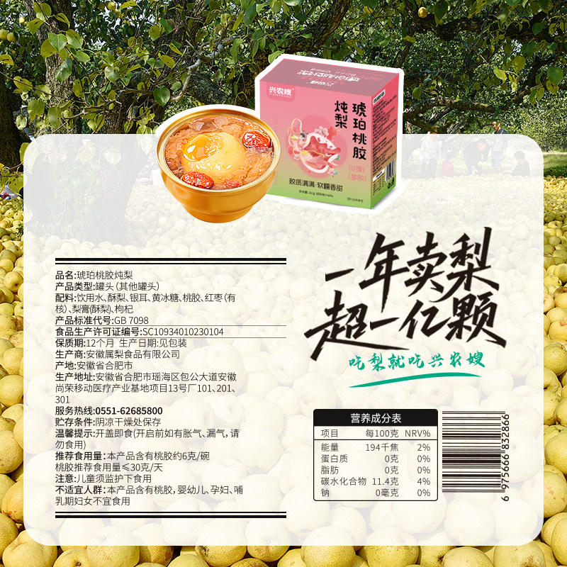 兴农嫂琥珀桃胶炖梨鲜炖冰糖雪梨烤梨免煮红枣枸杞银耳羹养生燕窝
