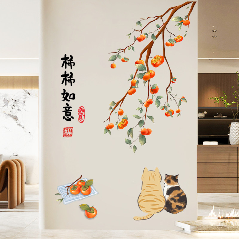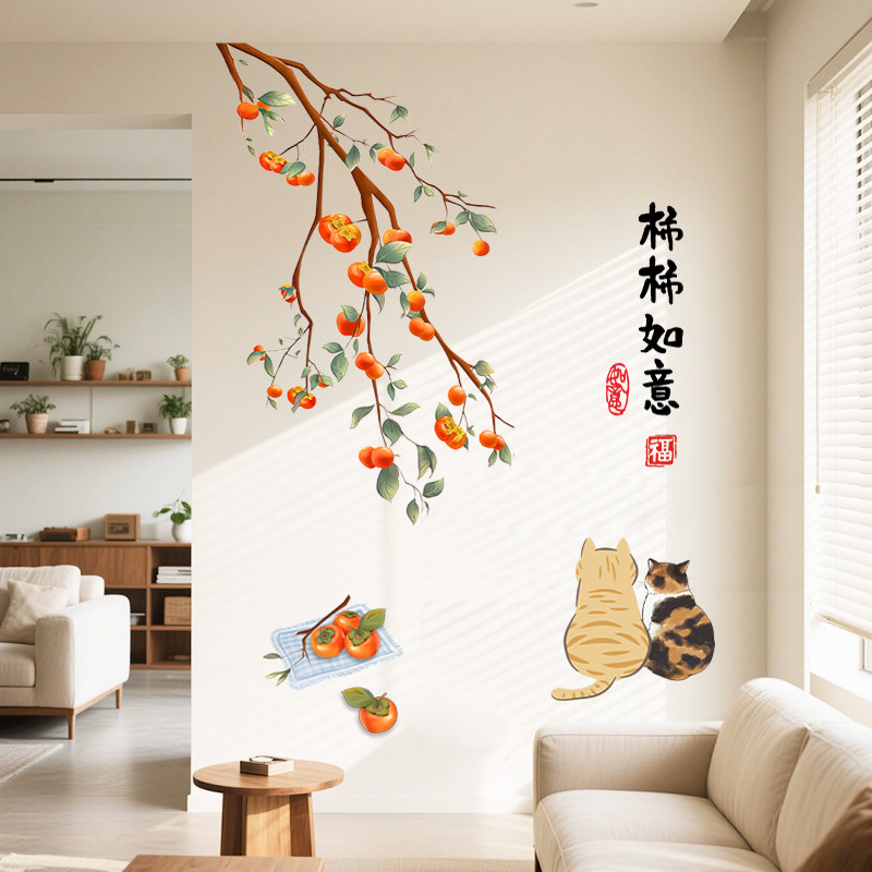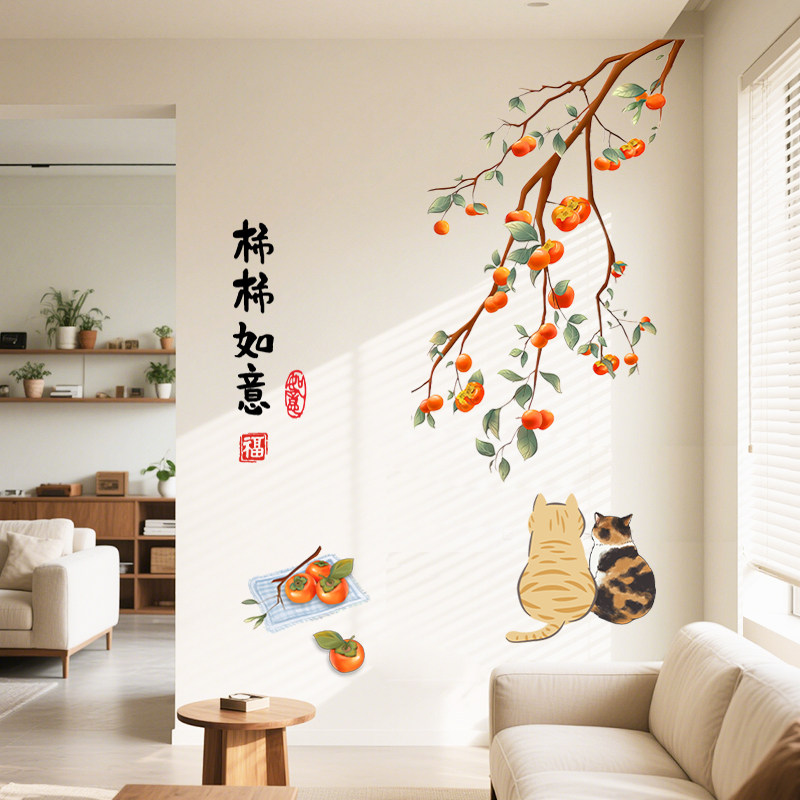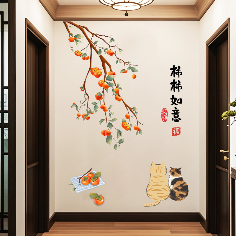 柿柿如意猫咪自粘墙贴玄关冰箱卧室客厅电视沙发背景温馨装饰贴纸