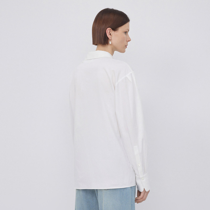 MAMC灯笼袖暗纹白色衬衫女2024新款修身独特小众设计感一字肩上衣