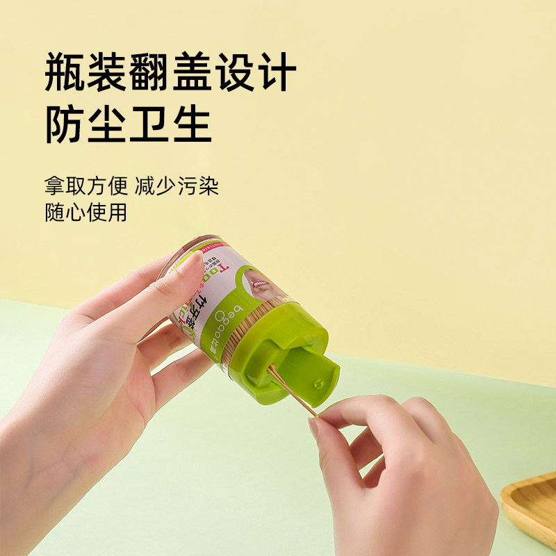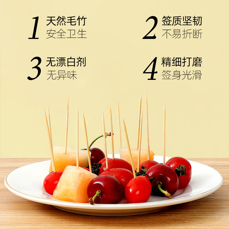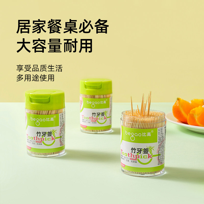 比高牙签家用双头一次性剔牙神器水果竹签商用酒店餐厅竹制筒装盒