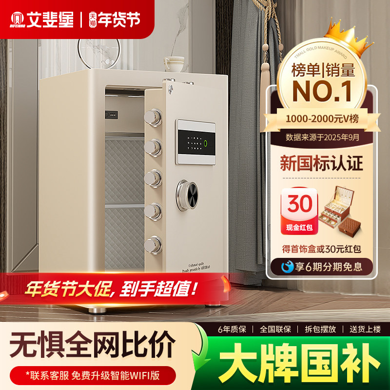 艾斐堡保险柜家用小型智能WIFI保险箱3S国标认证指纹密码床头柜办公室防盗全钢大型文件柜商用入衣柜大容量