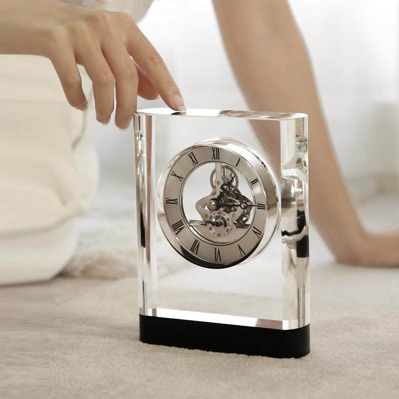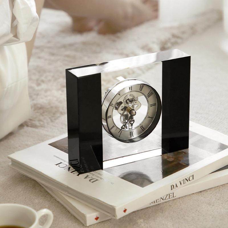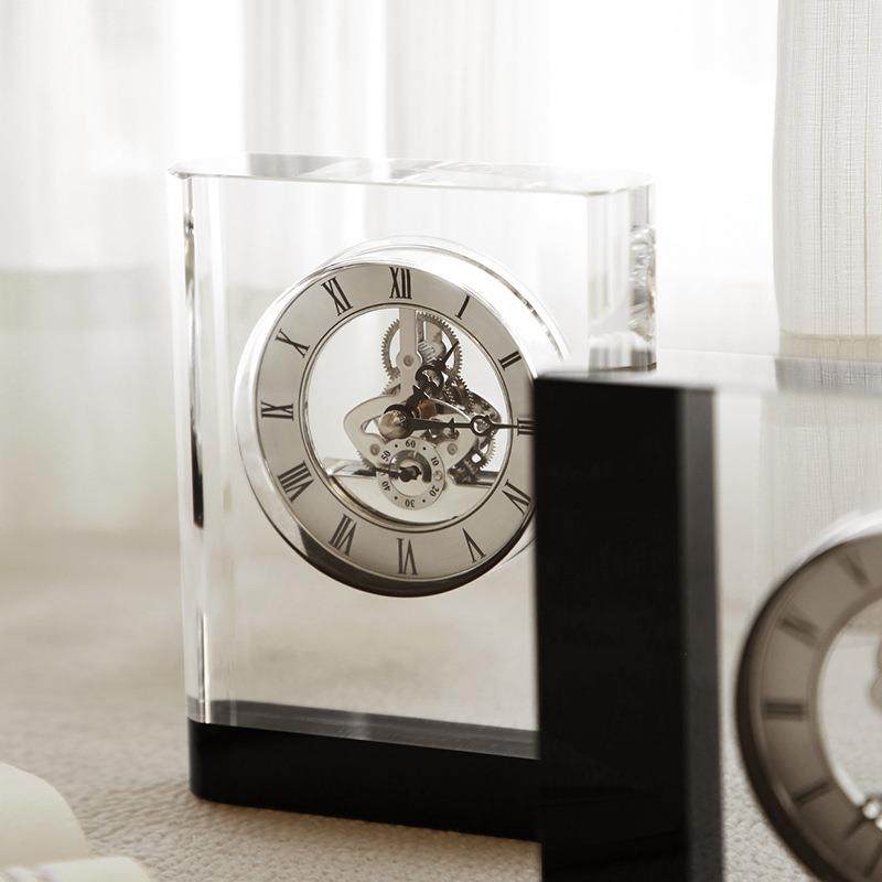 时尚简约水晶钟座钟银芯家用时钟样板间书桌玄关客厅软装饰品摆件