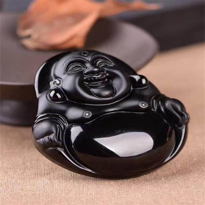 天然笑佛黑曜石弥勒佛项坠男女款项链黑耀石正品玉佛吊坠挂件饰品