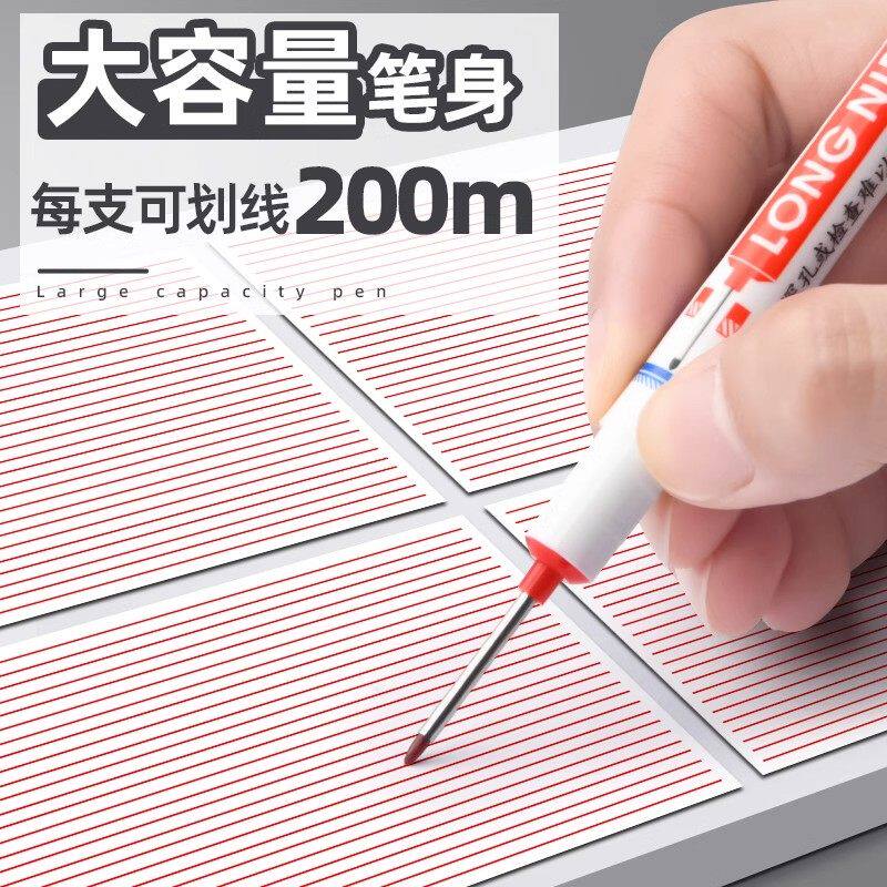 长头记号笔油性木工专用瓷砖特殊用途工地长嘴黑色深孔划线细加长画线计号笔深色板材打孔防水防油红色不掉色