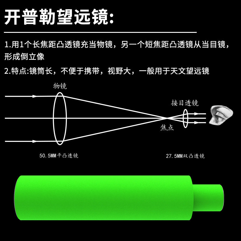 自制望远镜凹凸透镜望远镜模型小学科学实验伽利略开普勒望远镜