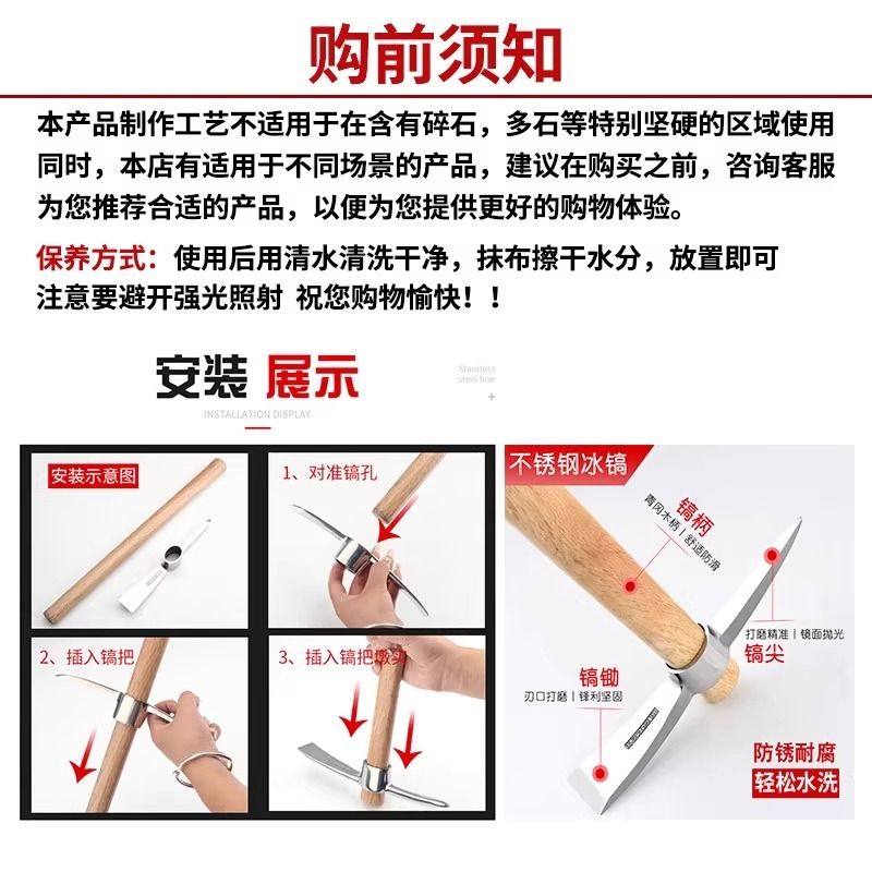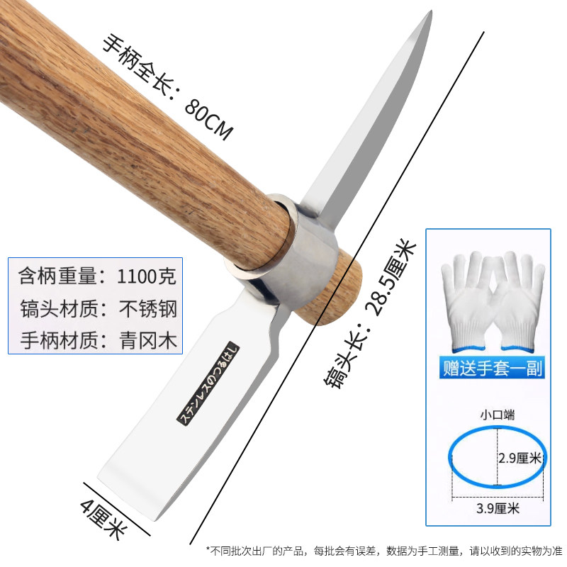 不锈钢小洋镐锄头户外钓鱼镐斧挖树根羊镐小镐头便携冰镐子十字镐