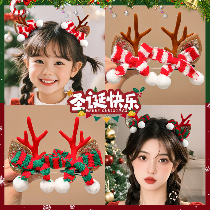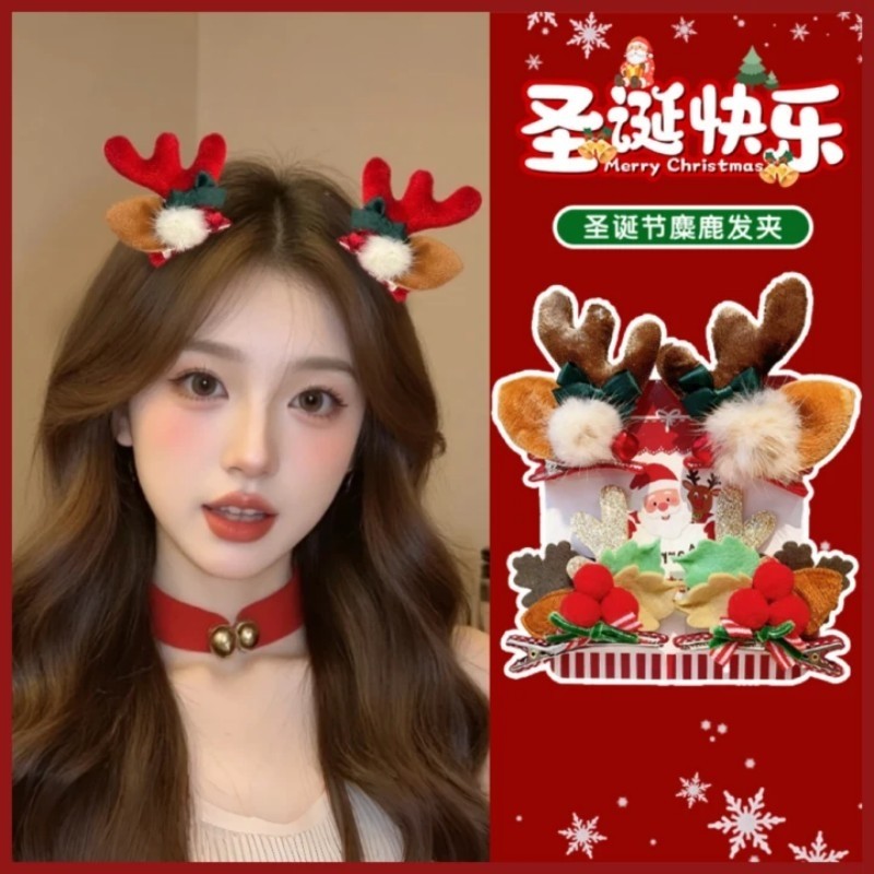 圣诞发夹麋鹿鹿角夹子少女cos头饰发饰可爱侧边顶夹节日拍照装扮