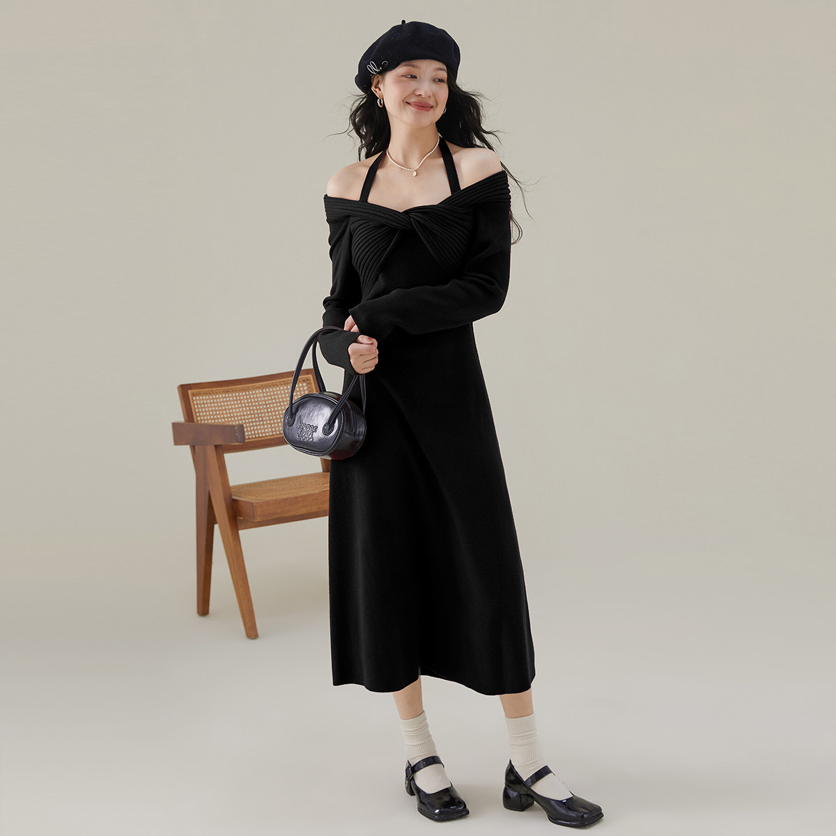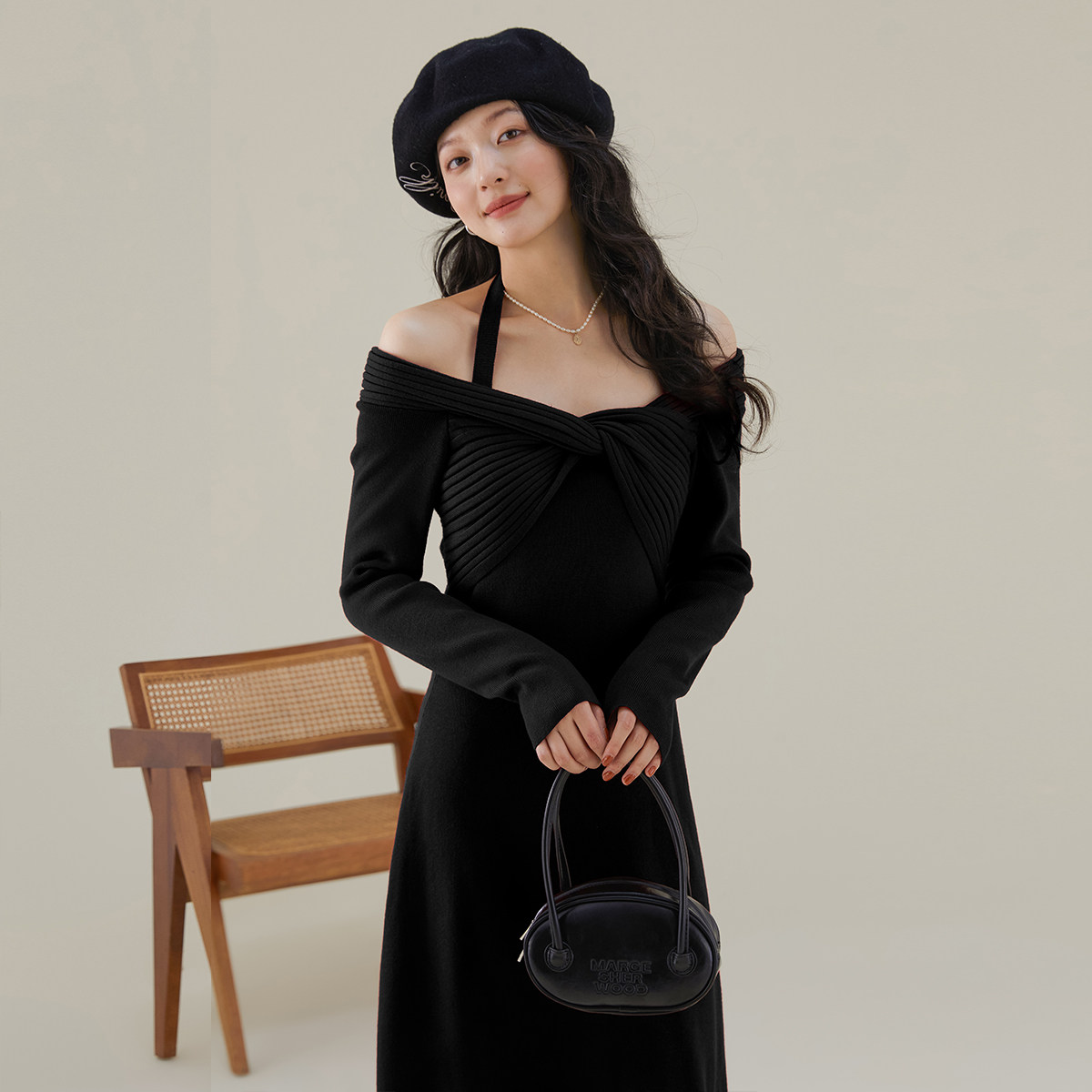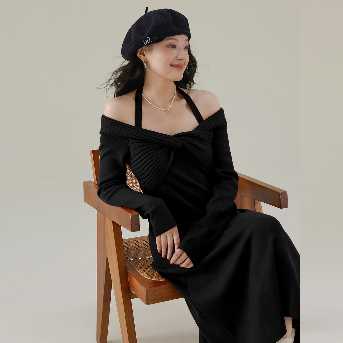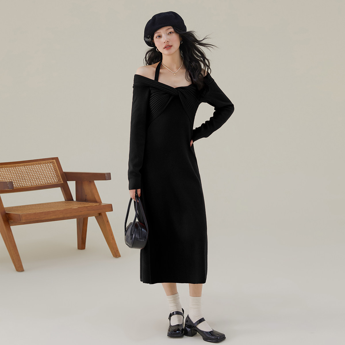 26年夏季设计感露肩针织连衣裙女高级感气质礼服裙子修身裙子