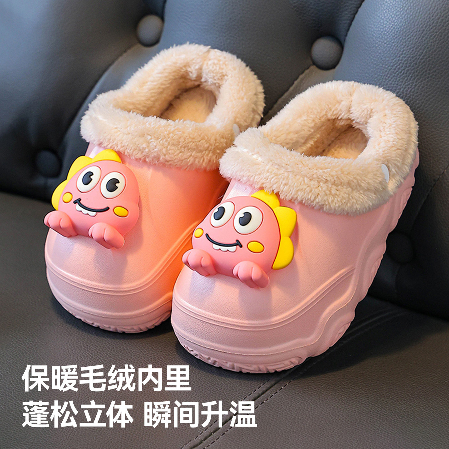 贝肽斯儿童棉拖鞋冬季加绒保暖防滑包头卡通可爱男女童家居鞋S