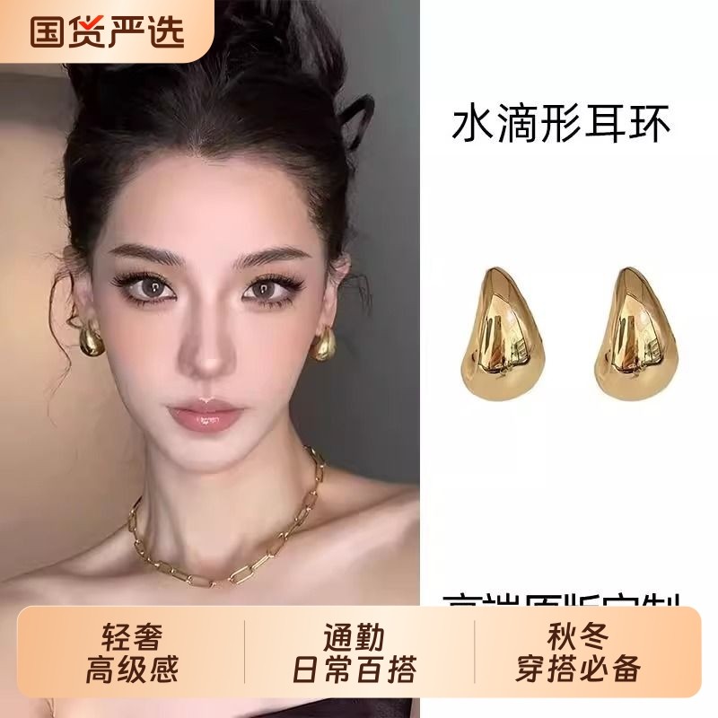 大水滴!金色耳环女2025新款爆款高级感轻奢耳钉小众欧美耳饰夸张