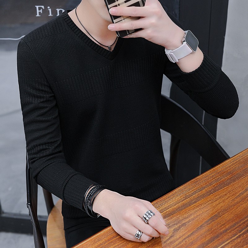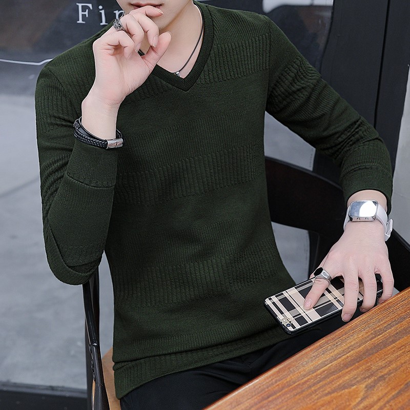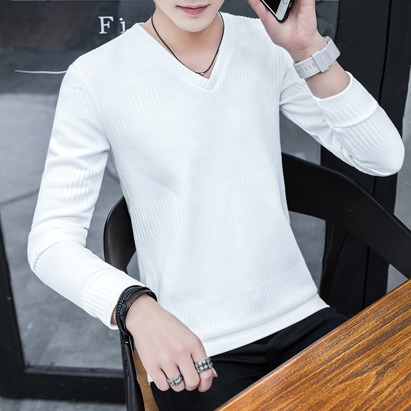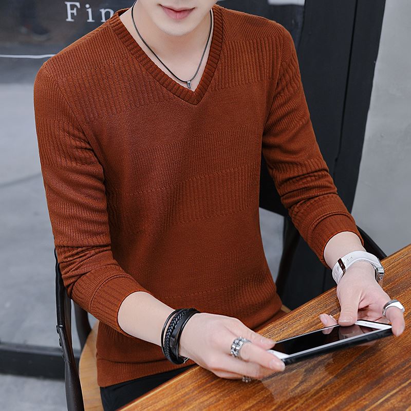 男士修身毛衣V领潮流秋冬纯色针织衫线衣春秋季新款打底衫上衣