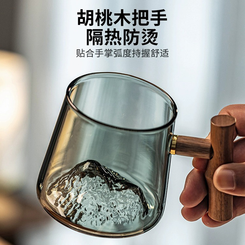 ins风粉色山脉厚底观山杯高颜值创意玻璃杯咖啡杯啤酒杯果汁杯子