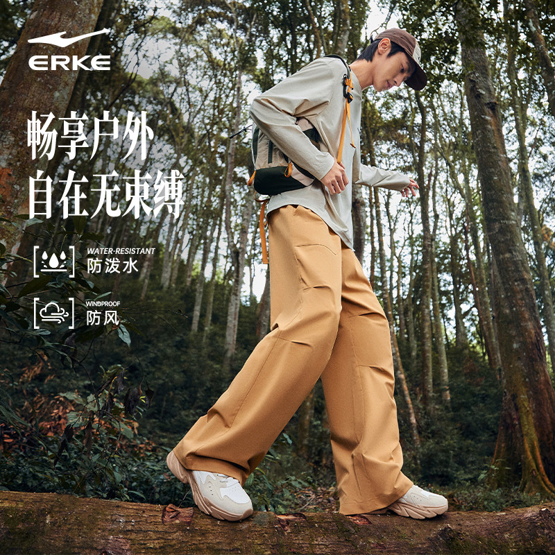 鸿星尔克伞兵裤男春季男士宽松直筒运动裤户外防风软壳裤休闲裤子