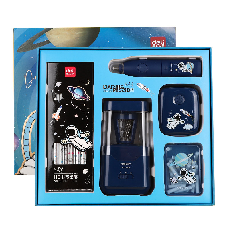 得力电动文具套装新年生日礼物小学生专用一年级女孩套考试装高级感学习用品幼儿园专用儿童男孩女孩全套文具