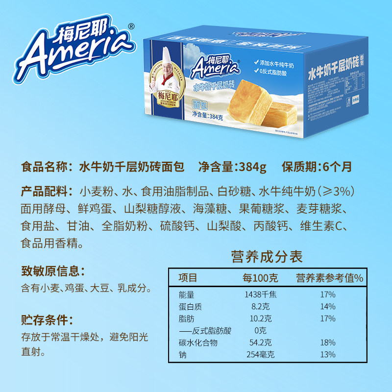 盼盼梅尼耶水牛奶千层奶砖2.3斤牛乳吐司手撕包营养早餐面包零食G
