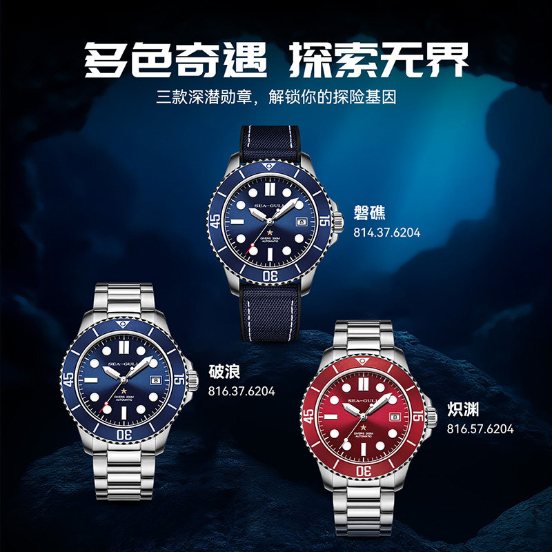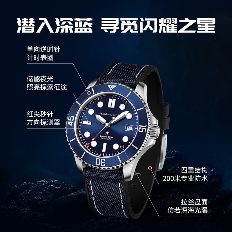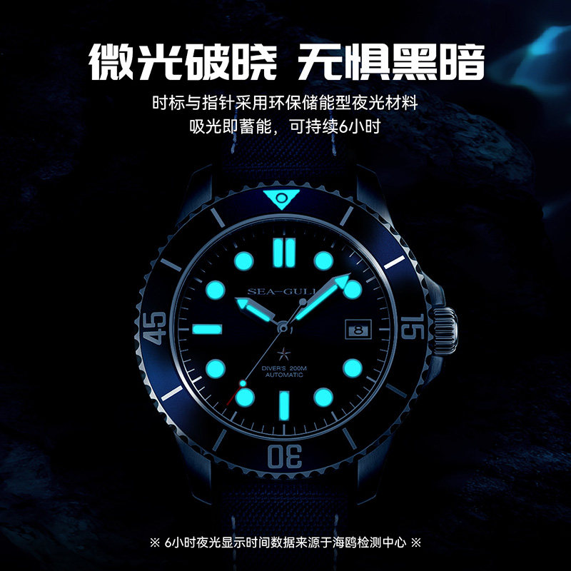 海鸥表男士海洋系列夜光深度潜水表水鬼手表男款自动机械表6204