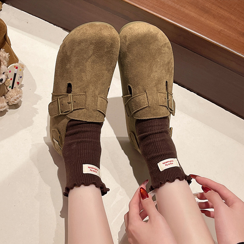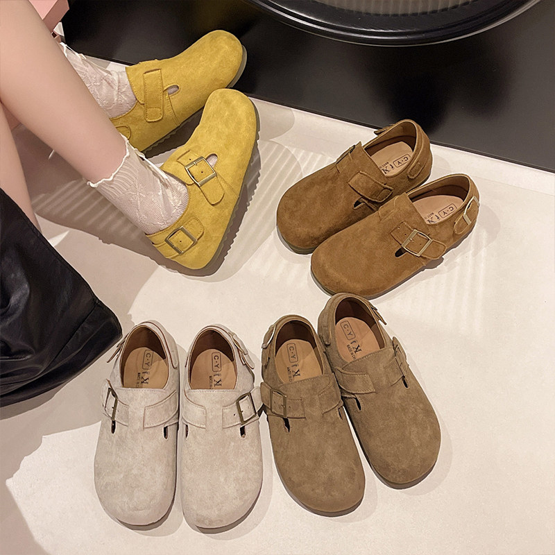复古平底全包勃肯鞋一脚蹬博肯单鞋女鞋子2026新款春秋乐福豆豆鞋