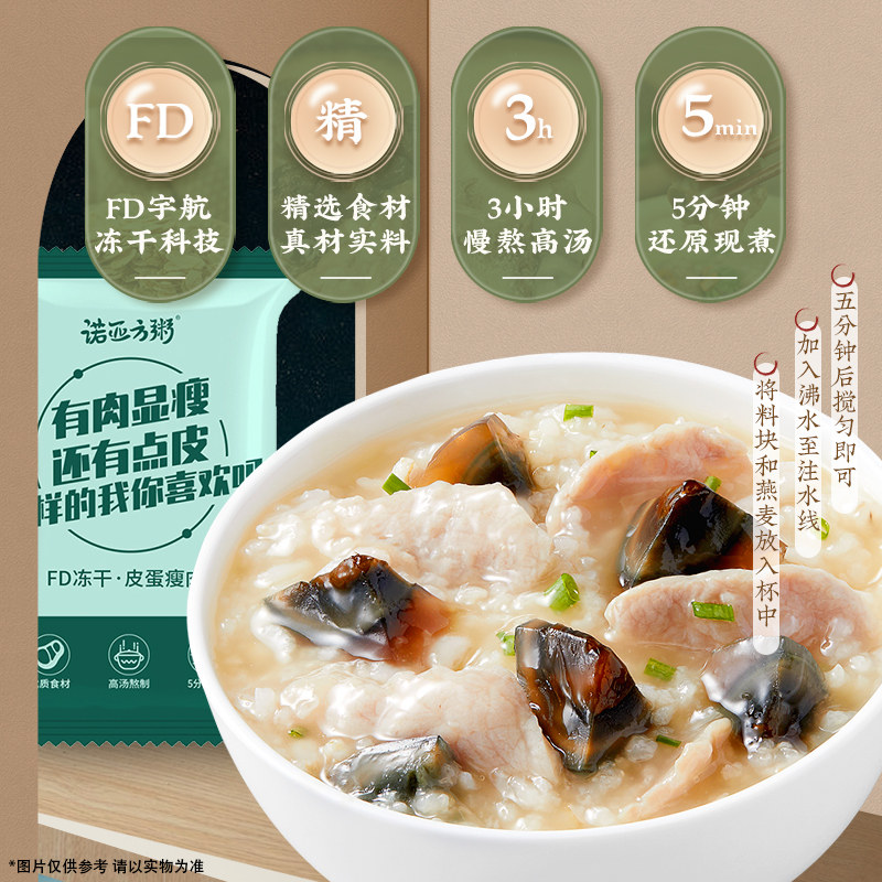 海福盛冻干速食粥袋装冲泡懒人即食早餐粥皮蛋瘦肉粥免煮方便食品