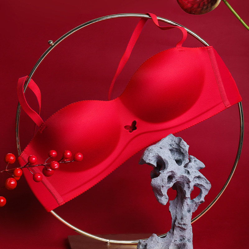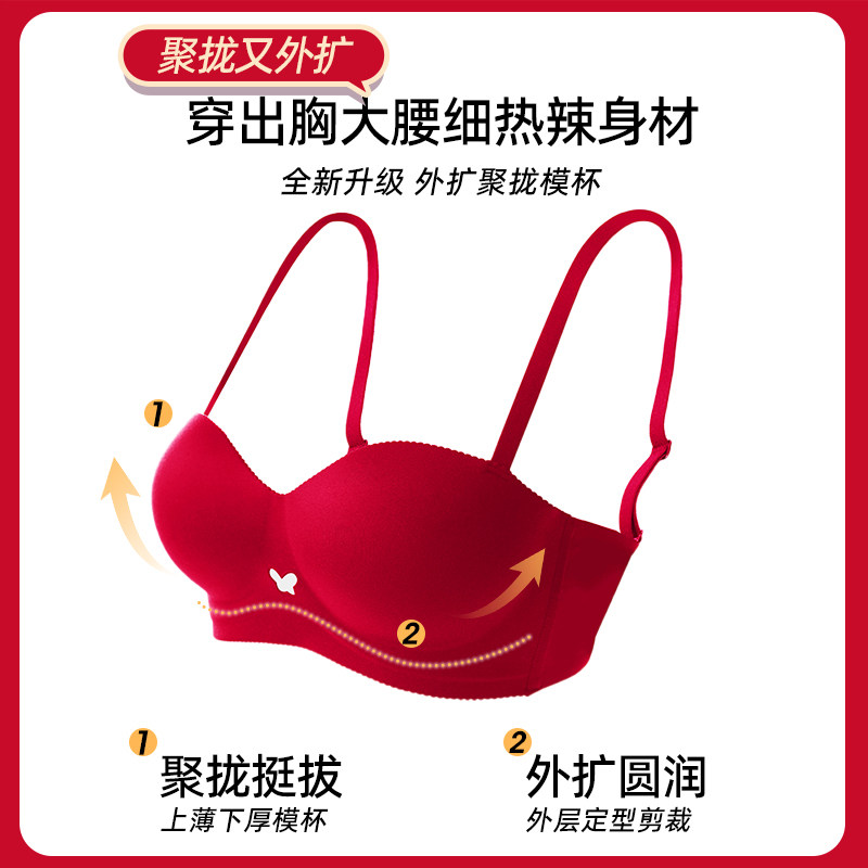 好奇蜜斯红色本命年结婚内衣女聚拢无痕小胸显大外扩文胸罩套装夏