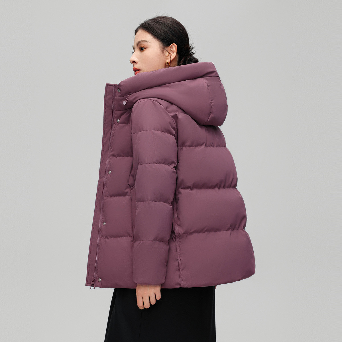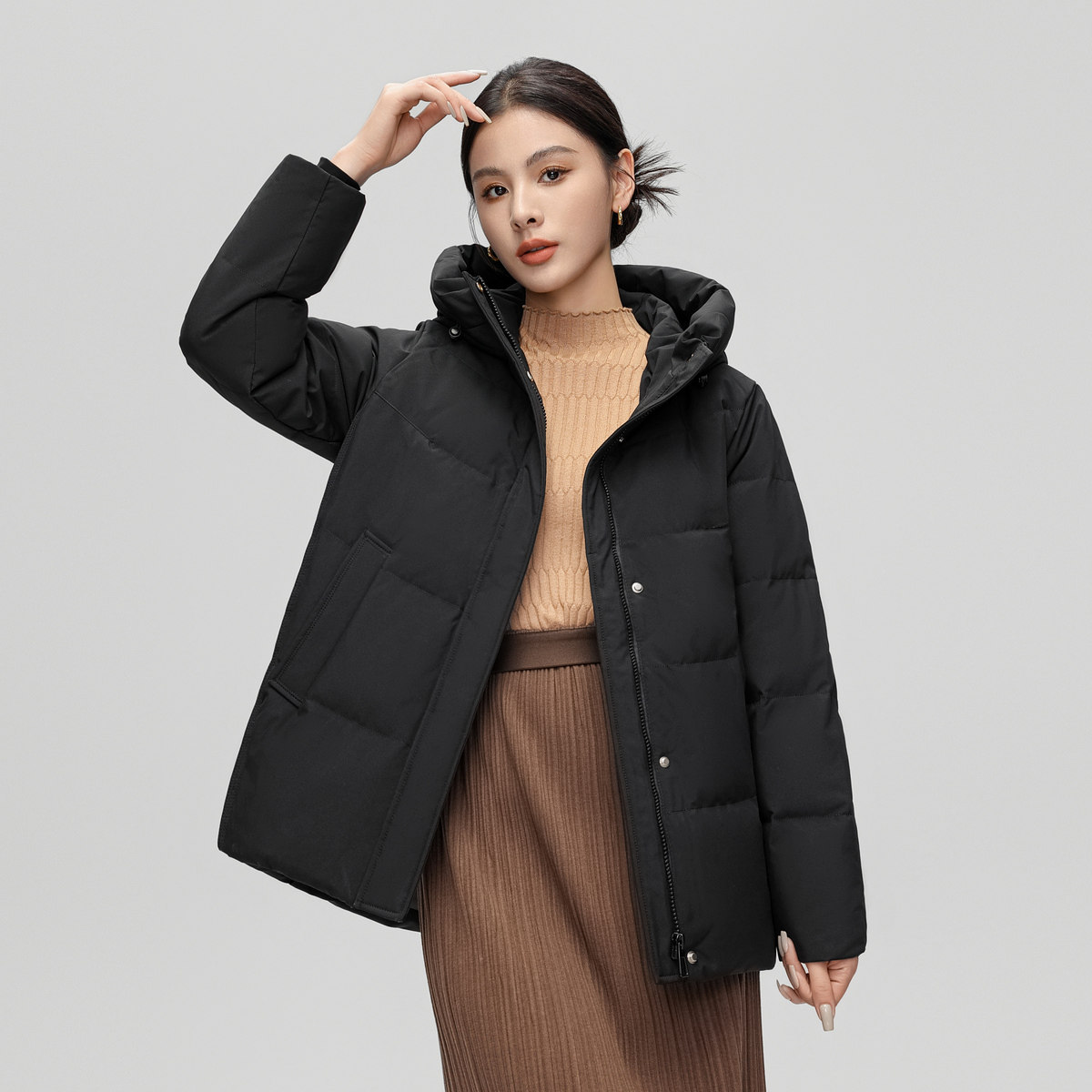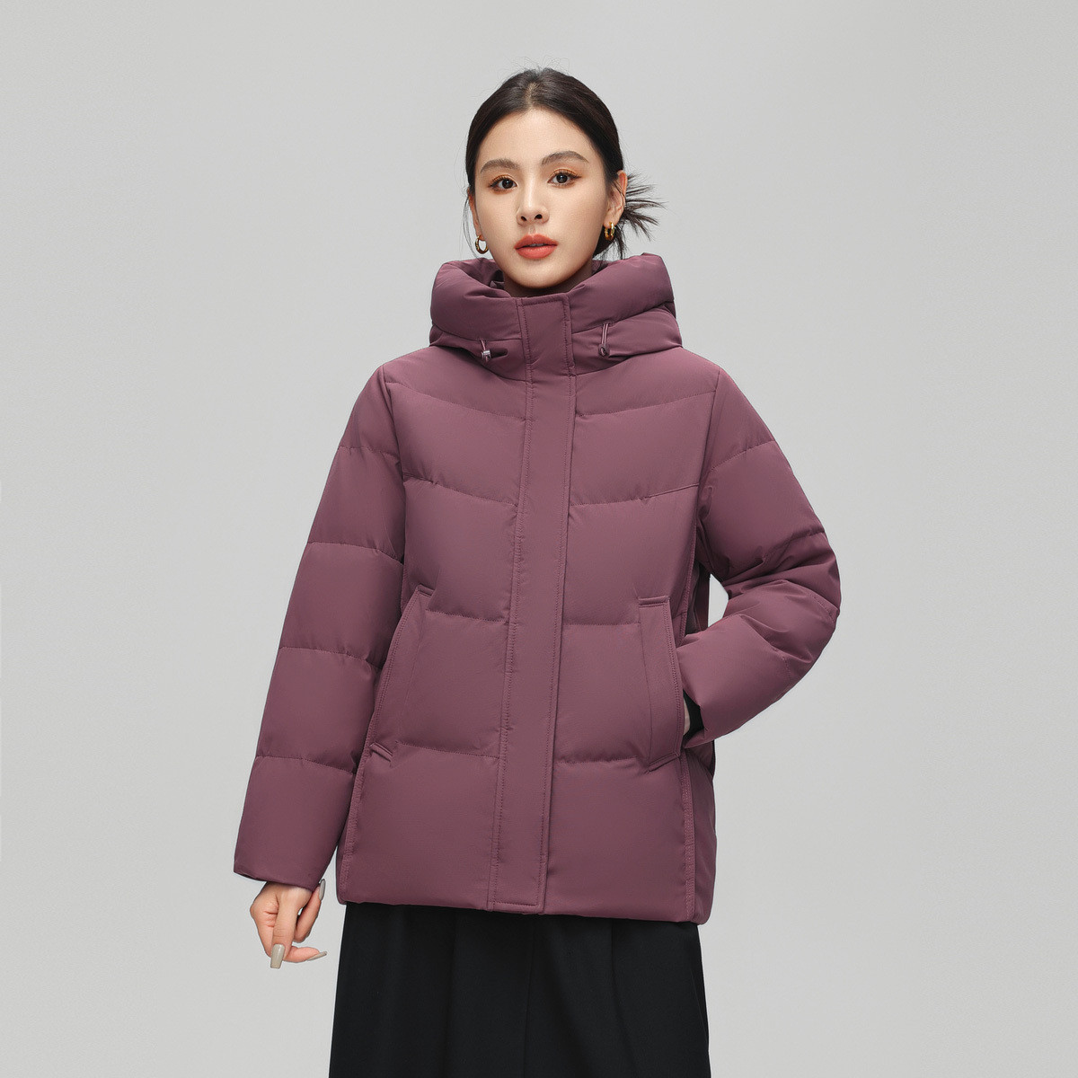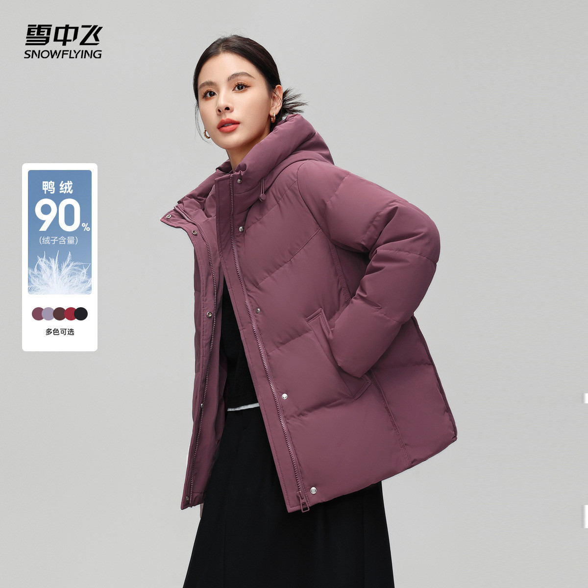 雪中飞2025冬新款女妈妈款羽绒服短款连帽温柔豆沙色简约百搭暖