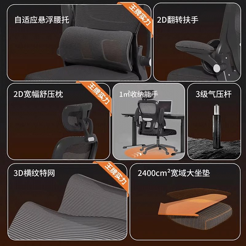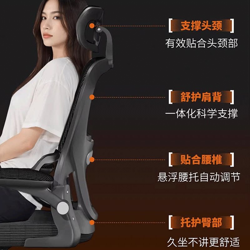 TotGuard人体工学椅电脑椅子家用办公久坐舒适撑腰座椅E1