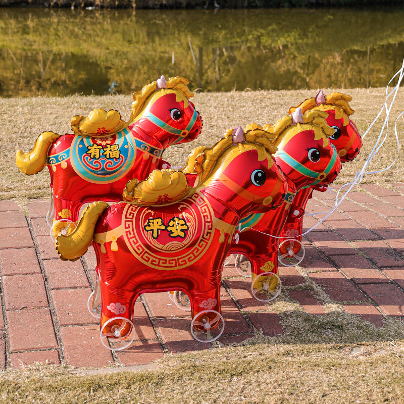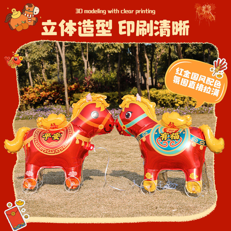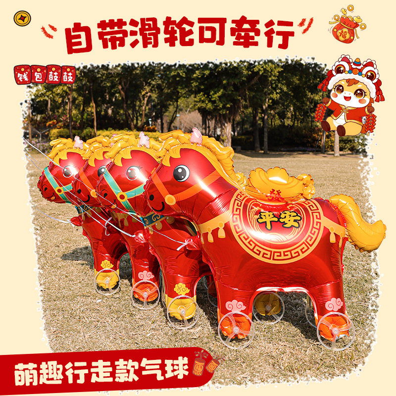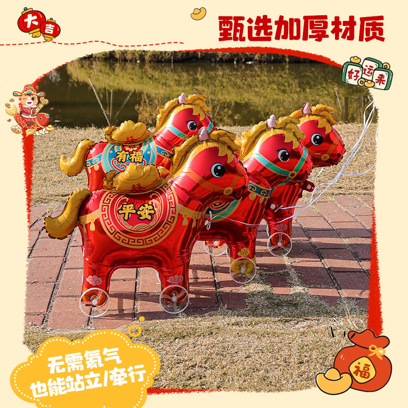 新年马上有钱马年造型带轮走路气球幼儿园商场活动装饰新年摆摊