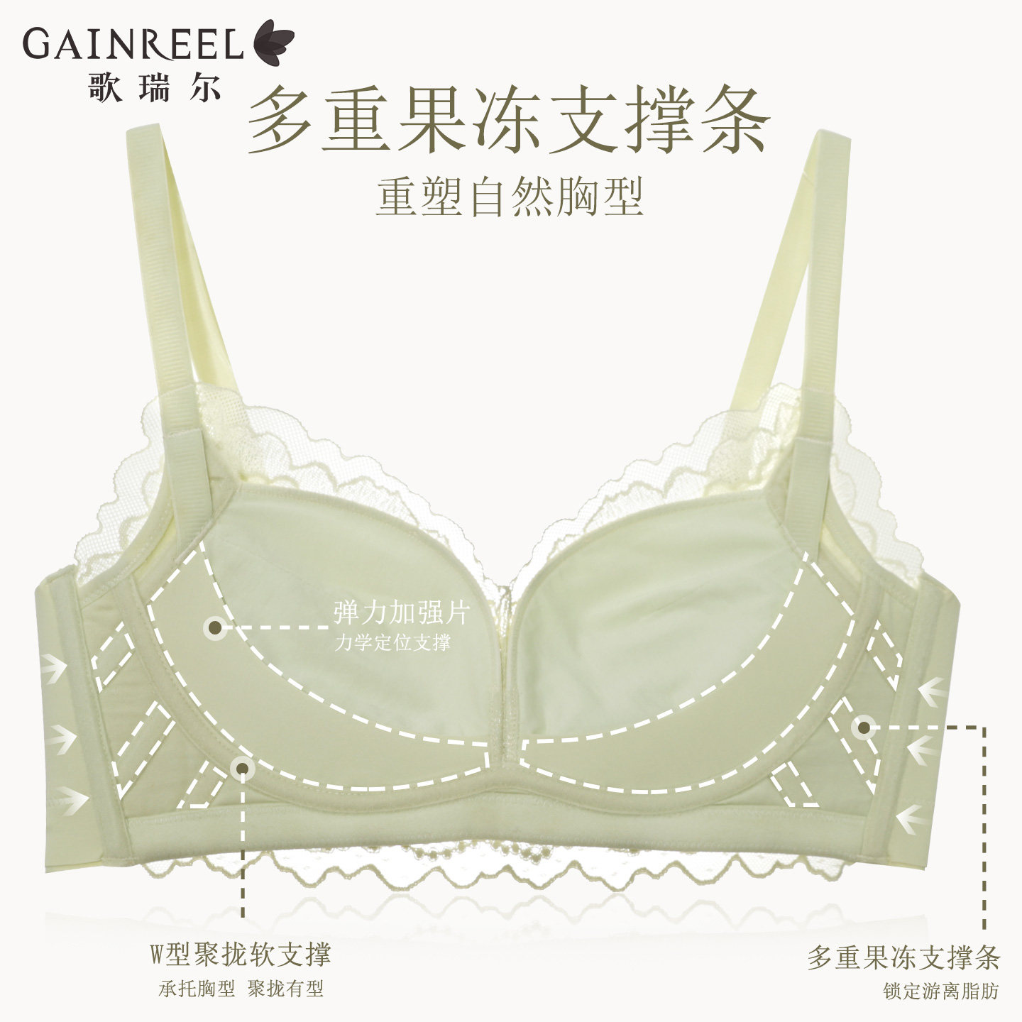 歌瑞尔蕾丝性感内衣女聚拢小胸调整型上托防下垂舒适无钢圈文胸罩