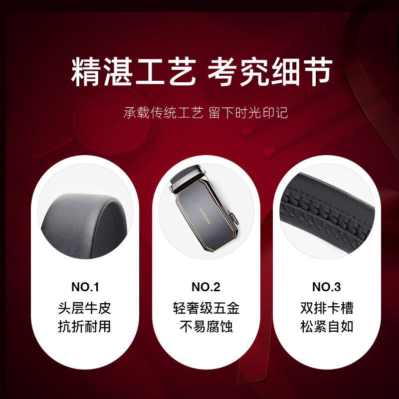 皮尔卡丹皮带男真皮腰带新款礼物商务男士正品本命年牛皮红裤带