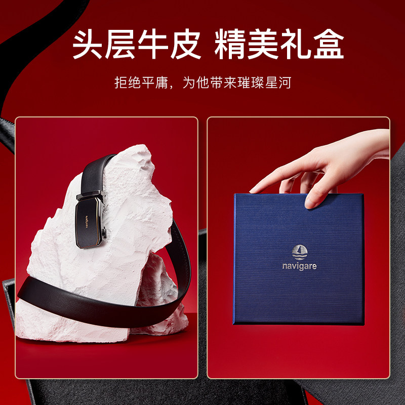 【送男朋友的礼物】Navigare意大利小帆船牛皮腰带男士自动扣皮带