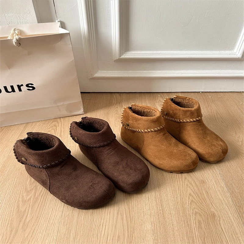 低帮厚底雪地靴女2025新款冬季懒人一脚蹬毛毛棉鞋加绒加厚女鞋子