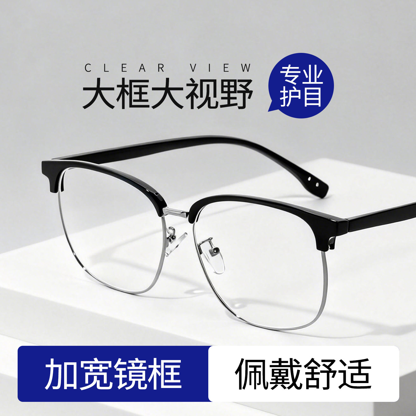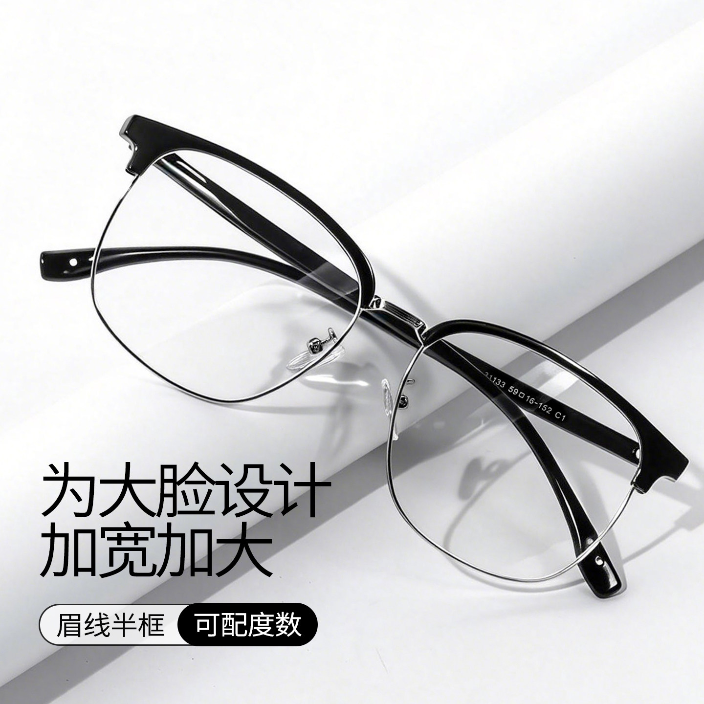 大框半框眼镜男款近视可配度数大脸防蓝光眼镜架防辐射镜框散光