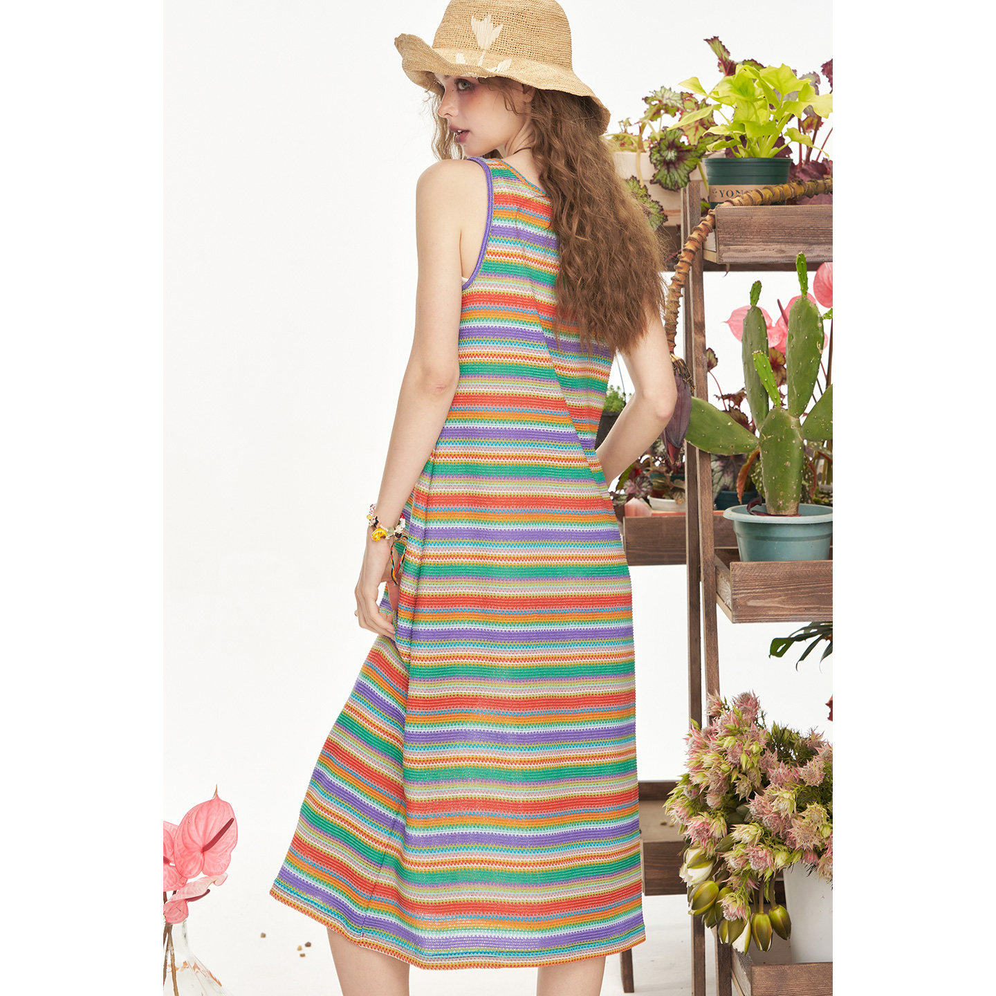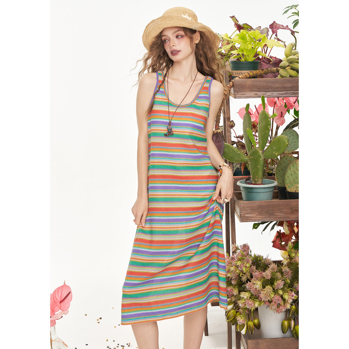 妖精的口袋多巴胺条纹吊带连衣裙女2025年夏季新款收腰休闲背心裙