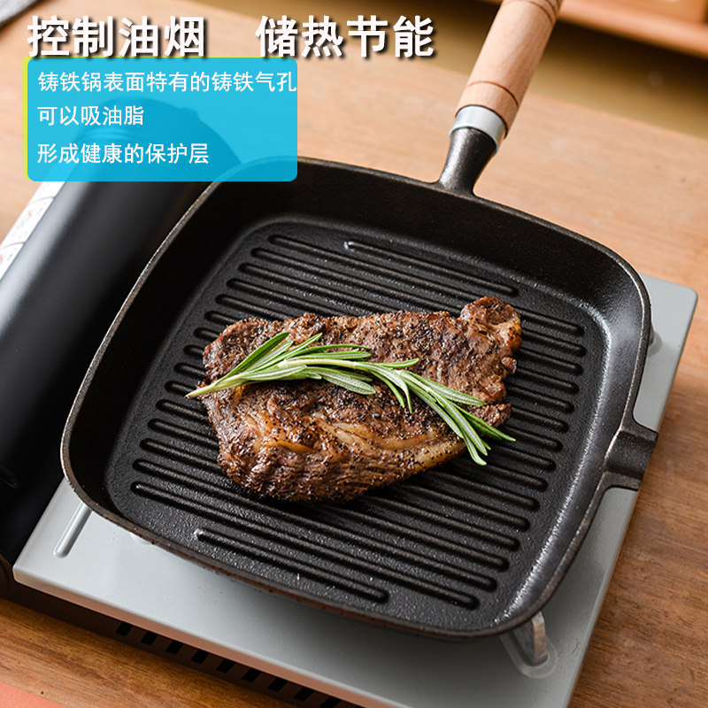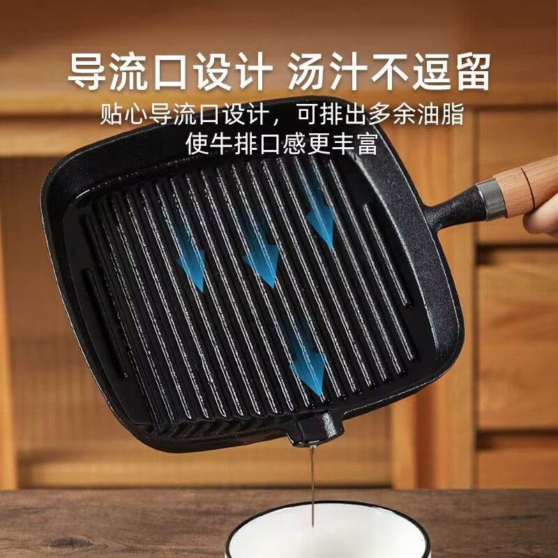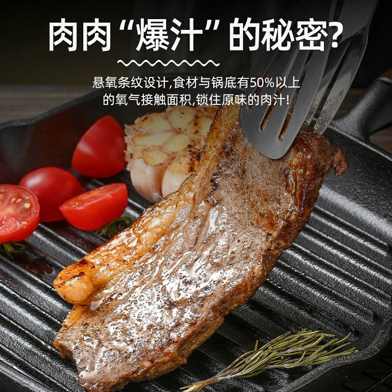 铸铁锅牛排煎锅早餐专用条纹煎牛排锅无涂层家用电磁炉平底不粘锅