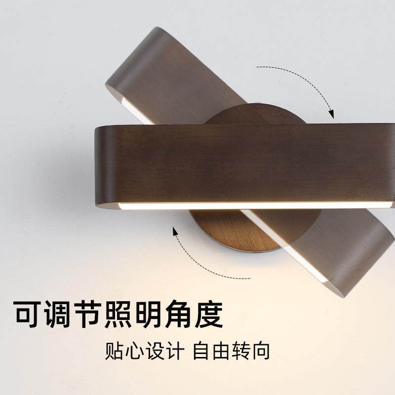 极简木质壁灯新中式复古卧室灯实木床头灯可旋转创意客厅墙壁灯具