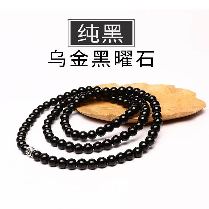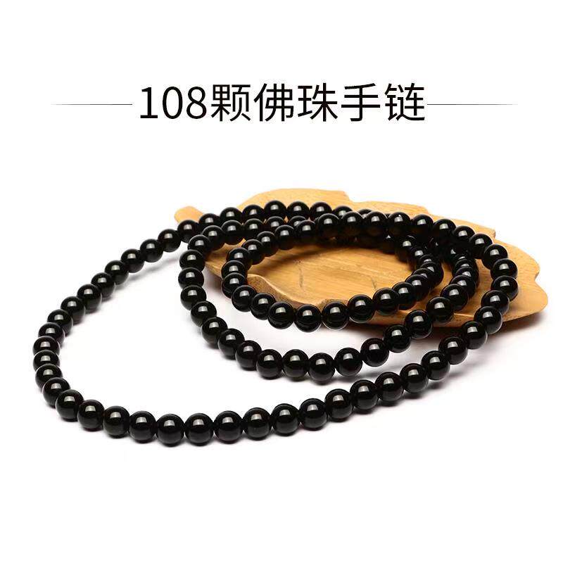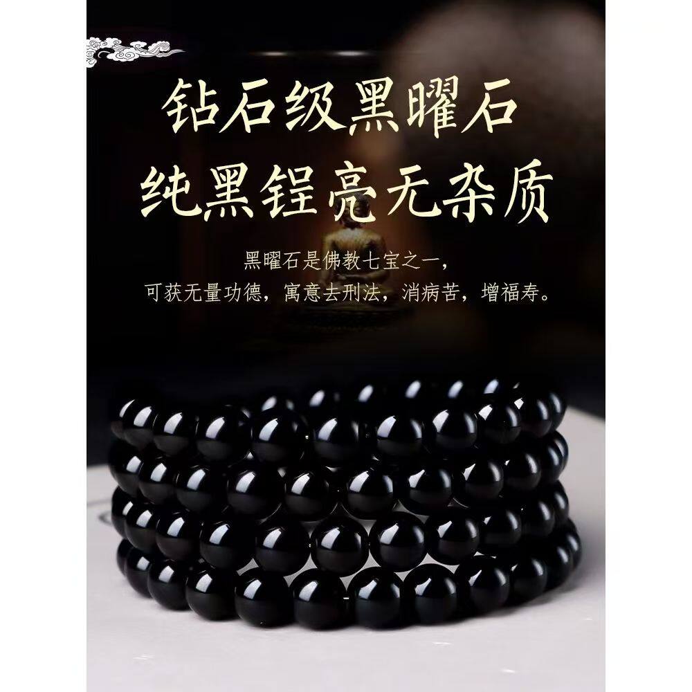 黑曜石108颗佛珠手串男女款黑曜石冰种乌金黑曜石情侣手串