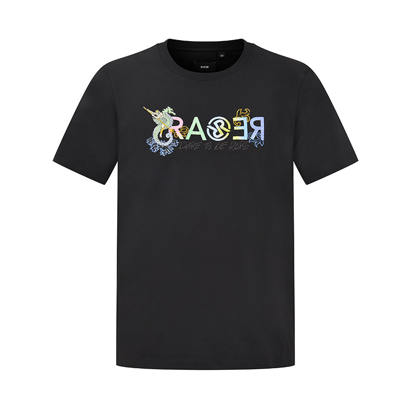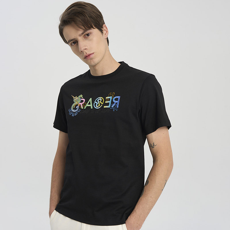 RARE威雅男装夏季新款海神logo工艺款黑色休闲圆领T恤短袖男