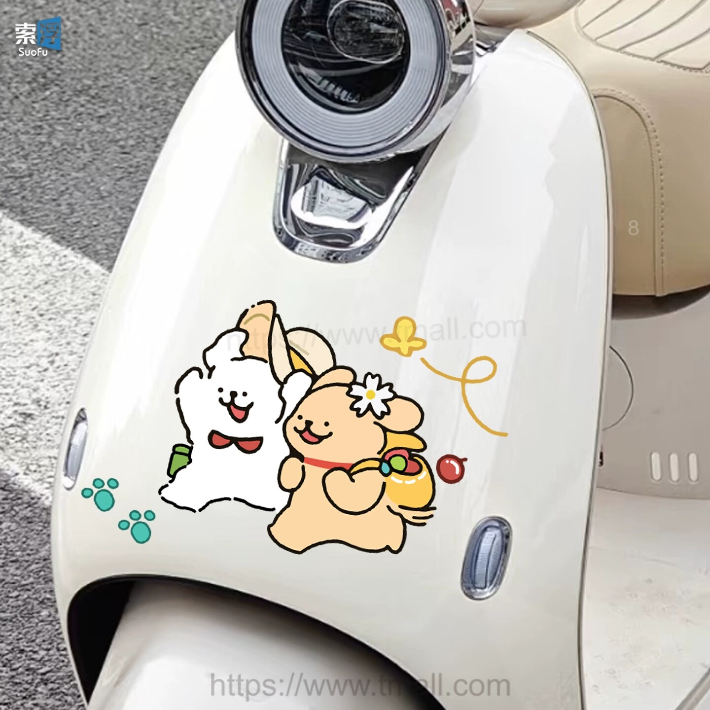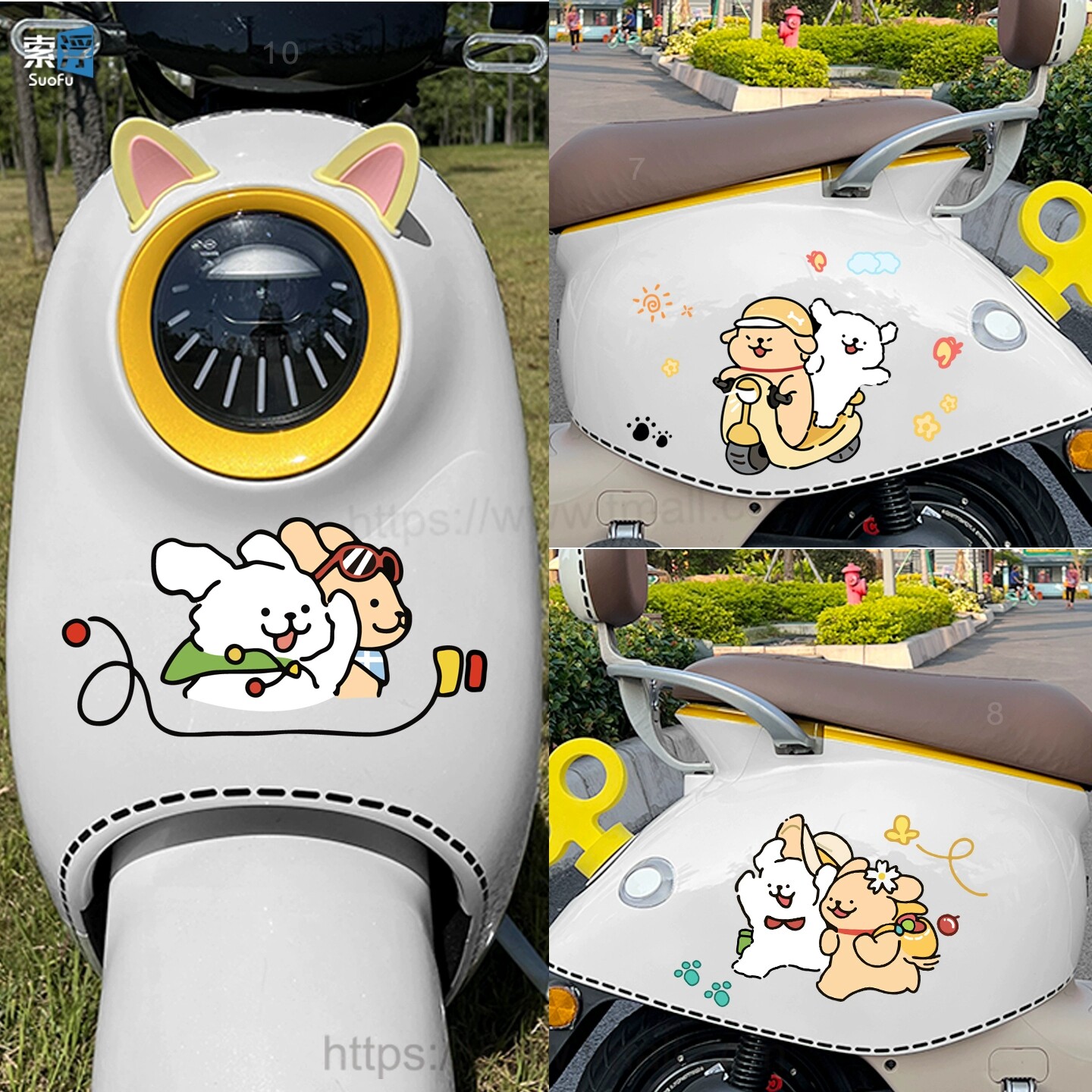 电动车贴纸线条小狗卡通摩托车雅迪爱玛台铃装饰划痕遮挡防水贴画