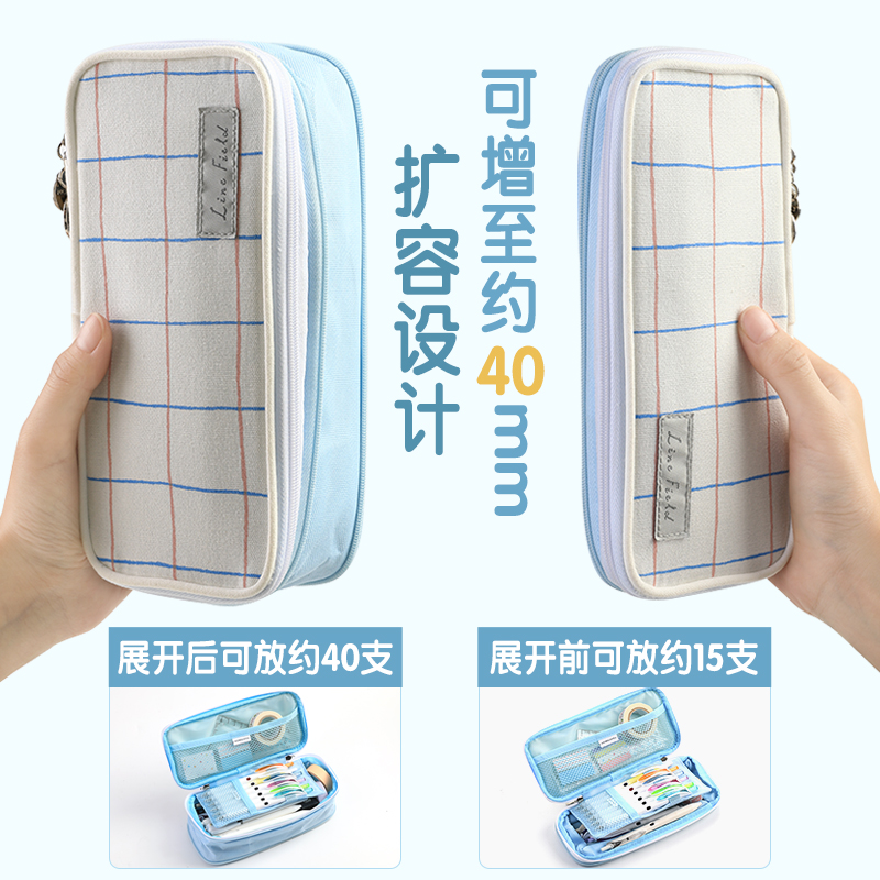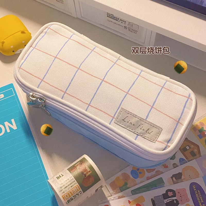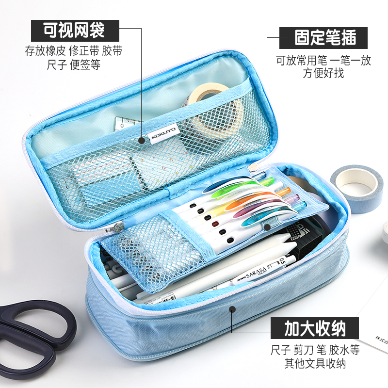 日本KOKUYO国誉格子印象笔袋可扩展开双层追星女孩笔袋淡彩曲奇铅笔盒新品大容量学生双层文具收纳盒ins日系