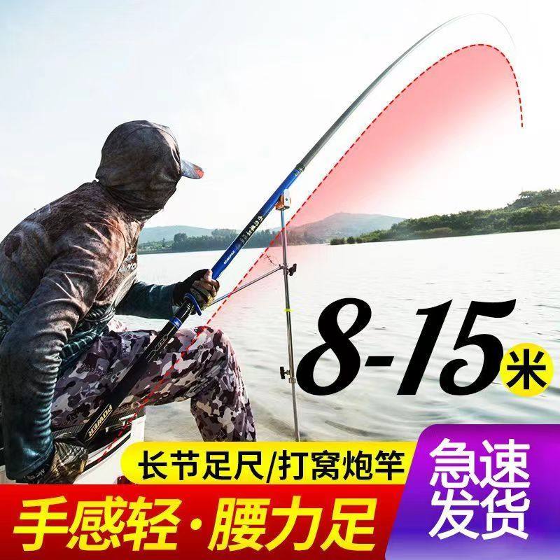 传统钓炮竿碳素长节鱼竿手竿10/11/12/13/15米超轻鲇钓鱼竿打窝竿